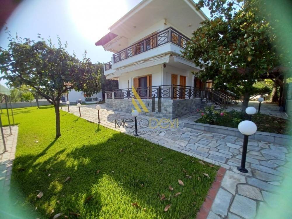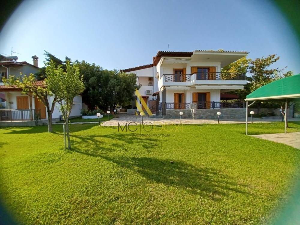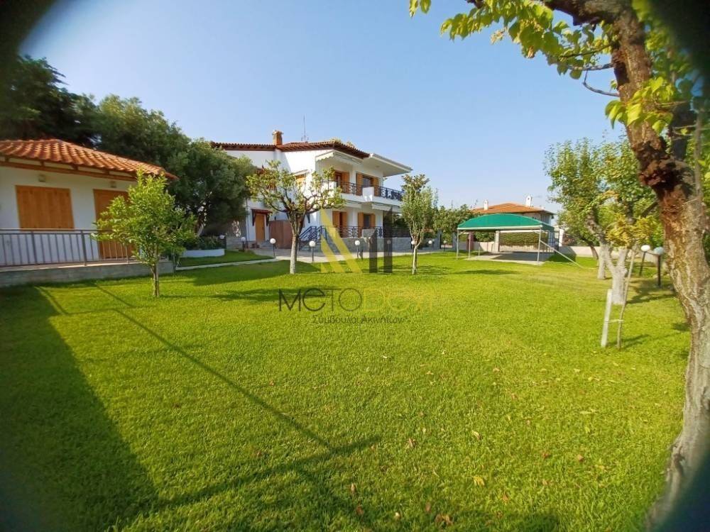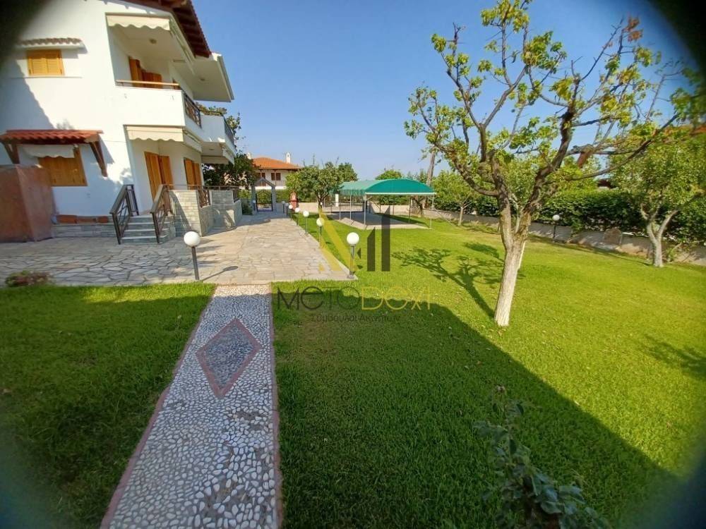 Χαλκιδική, Καλλικράτεια: Γεωπονικά Πωλείται Εντυπωσιακή Μονοκατοικία 228 τ.μ. με θέα θάλασσα Επιπλωμένη, 500 μ από την παραλία σε οικόπεδο 1.000 τ.μ. με Σ.Δ 0,4 και υπόλοιπο δόμησης 180 τ.μ περίπου . Αποτελείται από δύο ανεξάρτητες ισόγειες γκαρσονιέρες, ένα διαμέρισμα στον πρώτο όροφο με δύο δωμάτια, άνετο σαλόνι με τζάκι, χωριστή κουζίνα, μεγάλο μπάνιο και πολύ μεγάλα μπαλκόνια με απεριόριστη πανοραμική θέα και τέλος από έναν ανεξάρτητο ξενώνα - στούντιο 24 τ.μ. του 2005. Η Μονοκατοικία είναι κατασκευής 1978 σε άριστη κατάσταση, διαθέτει περίφραξη από μπετόν με επένδυση πλακάκι και μασίφ κάγκελα, διαμορφωμένο κήπο γκαζόν με αυτόματο πότισμα, σκεπαστές θέσεις πάρκινγκ, ηλεκτρική γκαραζόπορτα, μπάρμπεκιου με πλακόστρωτο χώρο και παγκάκια, δέντρα σκίασης και οπωροφόρα, υπόγειο λεβητοστάσιο πετρελαίου και κεραμοσκεπή. Το ακίνητο είναι πανταχόθεν ελεύθερο και βρίσκεται μόλις δύο λεπτά με το αυτοκίνητο από την εντυπωσιακή και οργανωμένη παραλία των Γεωπονικών απ' όπου επισυνάπτονται και κάποιες ενδεικτικές φωτογραφίες. Τιμή 460.000€ | Κωδικός Ακινήτου: #3947