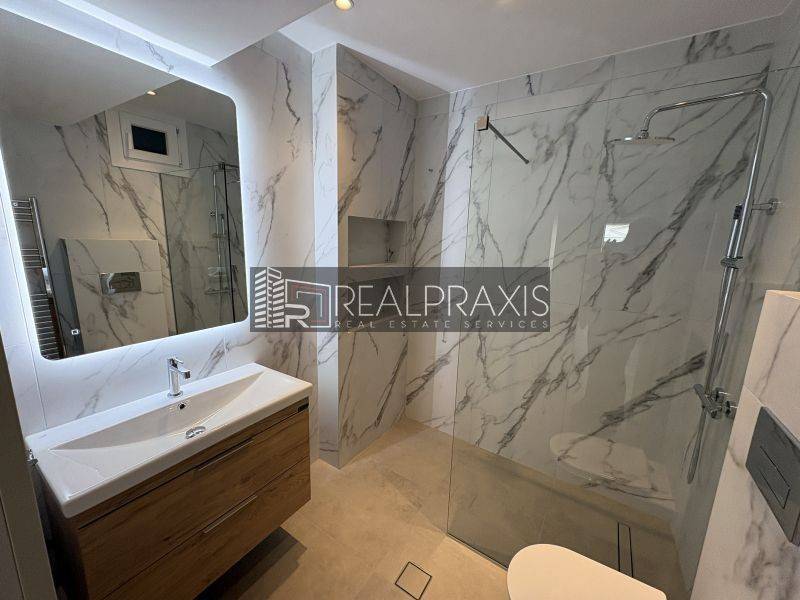 Έχει ένα άνετο πολυτελέστατο, πλήρως ανακαινισμένο μπάνιο με μεγάλη ντουζιέρα και ξεχωριστό άνετο χώρο για πλυντήριο-στεγνωτήριο.