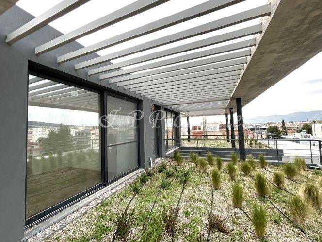 Αυτό που κάνει μοναδικό το ακίνητο πέρα από τον εσωτερικό σχεδιασμό του, είναι ο εξωτερικός περιβάλλοντας χώρος του δώματος που περιβάλλεται από γωνιακό φυτεμένο δώμα και έχει καθηλωτική περιμετρική θέα!