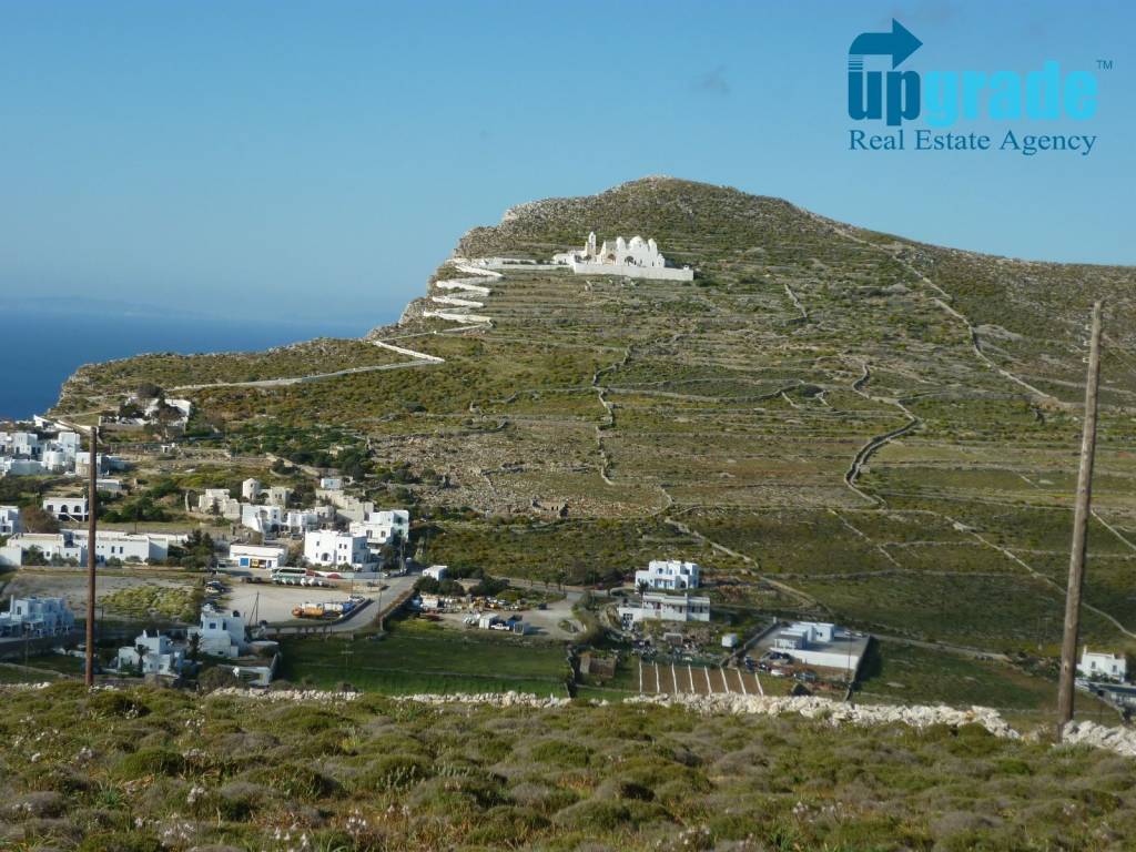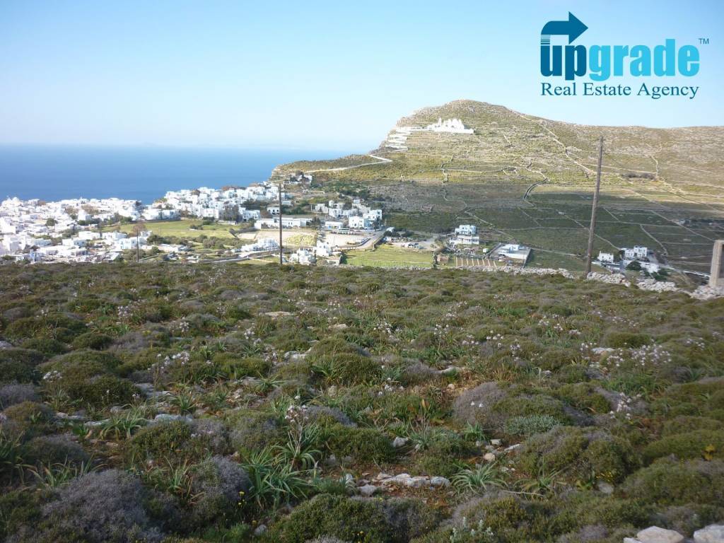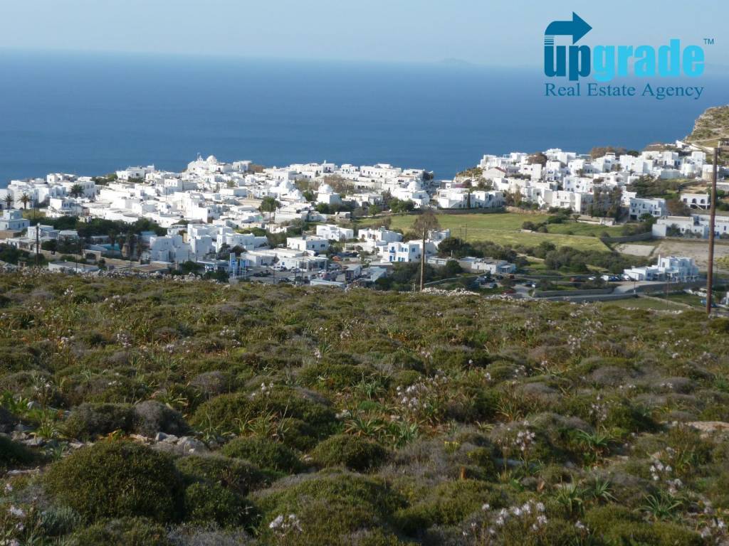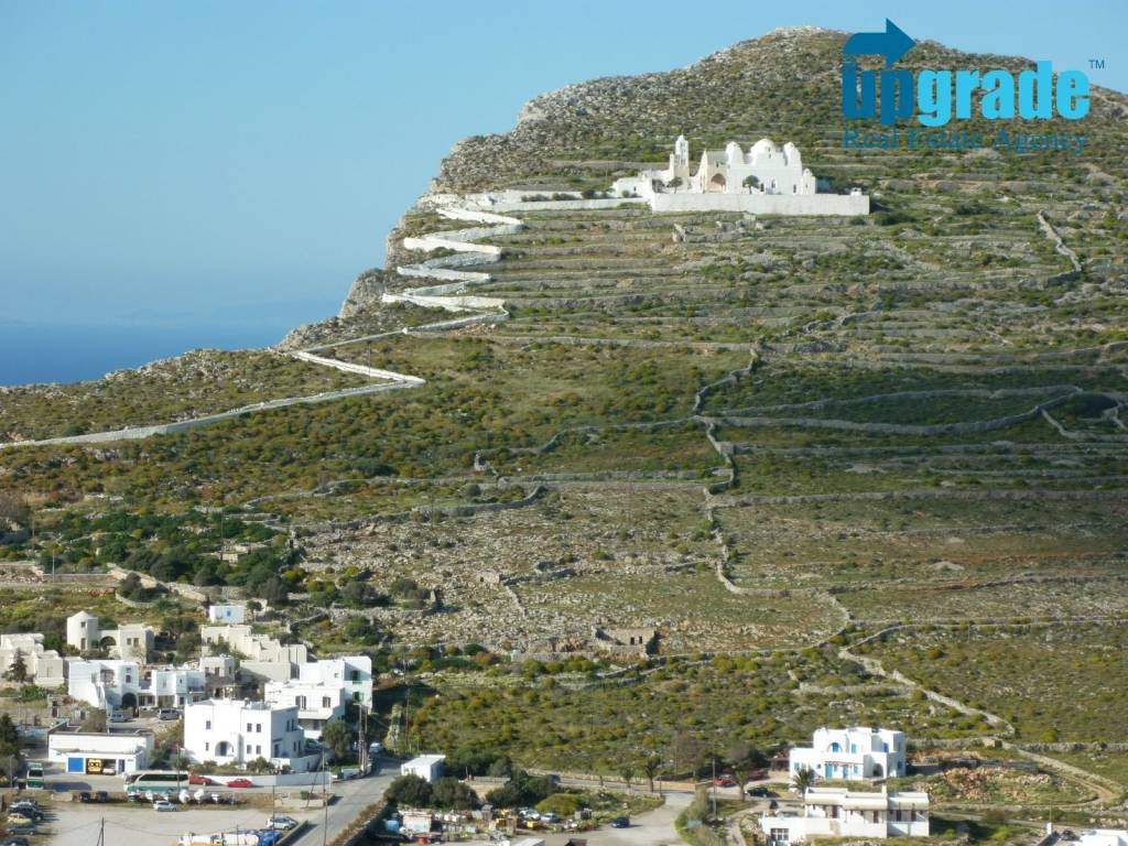 Χώρα, εκπληκτικό οικόπεδο 2.650τμ εντός οικισμού, με πανοραμική θέα στις θάλασσες του Αιγαίου του Κρητικού πελάγους και την εκκλησία της Παναγίας κτίζει βίλα 400τμ ή ξενοδοχείο 1.600τμ Τιμή 380.000 €