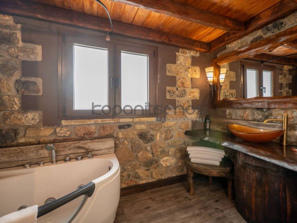 ΣΥΝΤΟΜΗ ΠΕΡΙΓΡΑΦΗ Πωλείται τουριστική μονάδα στο Βραχνί Αχαΐας, πλησίον Καλαβρύτων. Εμβαδόν κτιρίου: 340 τ.μ. Εμβαδόν οικοπέδου: 8014 τ.μ. ΑΝΑΛΥΤΙΚΗ ΠΕΡΙΓΡΑΦΗ Πωλείται τουριστική μονάδα συνολικής επιφάνειας 340 τ.μ. εντός οικοπέδου 8.014 τ.μ., στο Βραχνί Αχαΐας, πλησίον των Καλαβρύτων. Η μονάδα αποτελείται από ένα συγκρότημα κτιρίων που περιλαμβάνει μία ξύλινη οικία εμβαδού 90 τ.μ. και 5 πέτρινες επιφάνειας 50 τ.μ. έκαστη, που αναπτύσσονται σε ισόγειο 35 τ.μ. και πατάρι 15 τ.μ. Το ακίνητο διαθέτει υπόλοιπο δόμησης καθώς το σύνολό της για την αξιοποίηση του ακινήτου ως ξενοδοχειακή μονάδα δύναται να ανέλθει στα 1600 τ.μ. Η αρχιτεκτονική σχεδίαση κινείται σε λιτές γραμμές και σε συνδυασμό με τα φυσικά υλικά, όπως είναι η πέτρα και το ξύλο , που έχουν χρησιμοποιηθεί για την κατασκευή, επιτυγχάνεται απόλυτη εναρμόνιση με το φυσικό περιβάλλον στο οποίο και εδράζεται. Αποτελεί το απόλυτο ησυχαστήριο τοποθετημένο σε κατάφυτο ορεινό περιβάλλον με πανοραμική θέα στο ελατόδασος. Προσφέρει στον ένοικο αίσθηση χαλάρωσης, ηρεμίας και ευεξίας μέσω της επαφής του με τη φύση. Στο πλαίσιο της οικολογικής προσέγγισης και φιλοσοφίας, ο χώρος φιλοξενεί ορισμένες μορφές πανίδας όπως κατοικίδια ζώα, ελάφια και άλογα. Δύναται να αξιοποιηθεί είτε ως οικιστικό ακίνητο είτε ως επαγγελματικό τουριστικής εκμετάλλευσης, με την δεύτερη επιλογή να κρίνεται ιδιαίτερα επωφελής καθώς το ακίνητο απέχει μόλις 24 χλμ από την παραλία του Διακοπτού και 20 χλμ από το χιονοδρομικό κέντρο Καλαβρύτων. Μπορεί κατά συνέπεια να εξυπηρετήσει τόσο τον χειμερινό όσο και τον θερινό τουρισμό. ΤΕΧΝΙΚΑ ΧΑΡΑΚΤΗΡΙΣΤΙΚΑ Εμβαδόν οικοπέδου: 8014 τ.μ. Συνολικό εμβαδόν τουριστικής μονάδας: 340 τ.μ. Εμβαδόν ξύλινης οικίας: 90 τ.μ. Εμβαδό ξύλινων οικιών : 50 τ.μ. (ισόγειο 35 τ.μ. + πατάρι 15 τ.μ.) έκαστη / 5 οικίες Τιμή πώλησης: 800.000€ Κωδικός ακινήτου: 1066