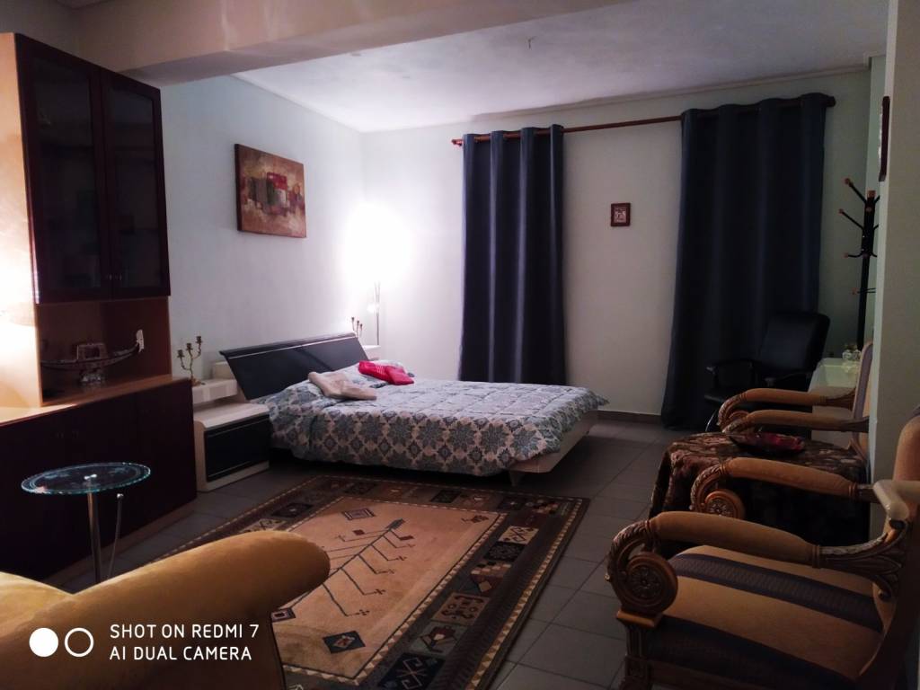 Πρόκειται για ένα πλήρως επιπλωμένο διαμέρισμα στο κέντρο των Τρικάλων, έτοιμο για κατοίκηση. Βρίσκεται πίσω από το Δικαστικό Μέγαρο, δίπλα από σούπερ μάρκετ και φαρμακείο. Διαθέτει ένα διπλό κρεβάτι με σετ κομοδίνων και συρταριέρας, μία μεγάλη βιβλιοθήκη, δυο καναπέδες πολυτελείας και ένα γραφείο . Διαθέτει επίσης ένα μικρό κουζινάκι με ένα ψυγείο, νεροχύτη και ντουλάπια, καθώς και ένα μπάνιο - WC με ντους και θερμοσίφωνα. To διαμέρισμα δεν διαθέτει μπαλκόνια.