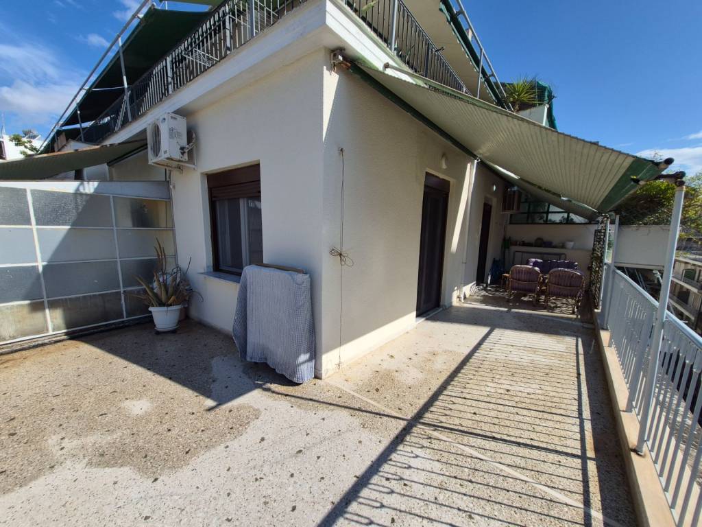 Εξαιρετικό ρετιρέ διαμπερές.2 υπνοδωμάτια κουζινα χωριστή, σαλονι,χωλ.ειναι επιπλωμένο εξοπλισμένο με όλες τις οικιακές συσκευές.εχει ενεργειακα κουφωματα pvc με ηλεκτρικα ρολά ,πορτα ασφαλειας ,ξύλινο πατωμα στα υπνοδωμάτια και το σαλόνι.3 κλιματιστικα .Κεντρικη θερμανση φυσικου αεριου.