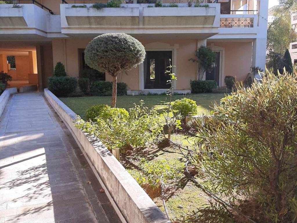 Ισογειο διαμερισμα 114 τμ με αμεση προσβαση σε κηπο 4 στρ. σε ησυχη περιοχη με πολυ πρασινο. 2 ευρυχωρα υδ, κουζινα 14 τμ, σαλονι, τραπεζαρια, μπανιο, wc. Αποθηκη 12 τμ, υπογεια θεση σταθμευσης, ηλιακος, συναγερμος, σιτες, ηλεκτρικες συσκευες miele. Θα παραδοθει ανακαινισμενο σε αριστη κατασταση.
