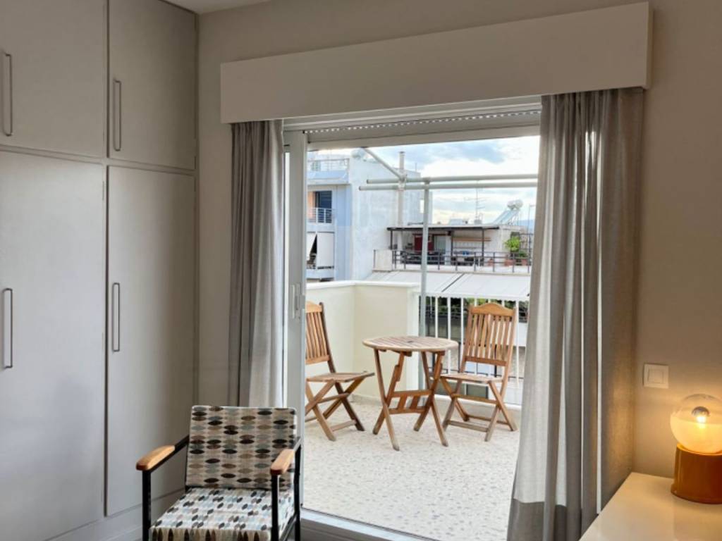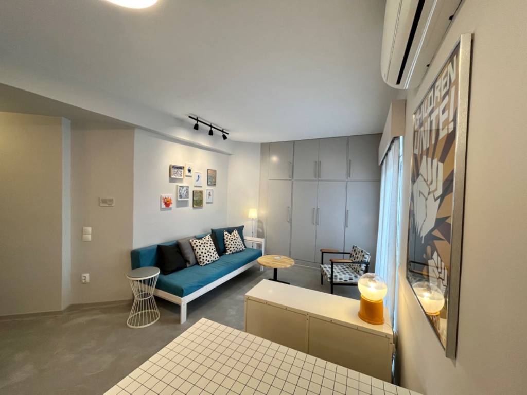 Επιπλωμένο δώμα 31 ㎡ ρετιρέ 6ου ορόφου (διαμπερές). Αποτελείται από ένα μεγάλο δωμάτιο, ξεχωριστή κουζίνα και λουτρό. Έχει βεράντα 20 ㎡ με απεριόριστη θέα. Ανακαινίστηκε πλήρως το 2023. Διαθέτει κλιματισμό, ηλεκτρικές συσκευές στην κουζίνα (ψυγείο, κουζίνα, απορροφητήρα), πόρτα ασφαλείας, τέντες, καθώς και τα έπιπλα που φαίνονται στις φωτογραφίες. Βρίσκεται σε μια όμορφη & ήσυχη γειτονιά, πολύ κοντά στο Άλσος (200 Μ) & την πλατεία της Ν. Σμύρνης (600 Μ) με εύκολη πρόσβαση σε συγκοινωνίες (300 Μ από την Λ. Συγγρού & 350 Μ από την στάση του τραμ). [Διευκρίνιση: δεν διαθέτει πιάτα, ποτήρια, σκεύη κουζίνας, λευκά είδη κλπ]