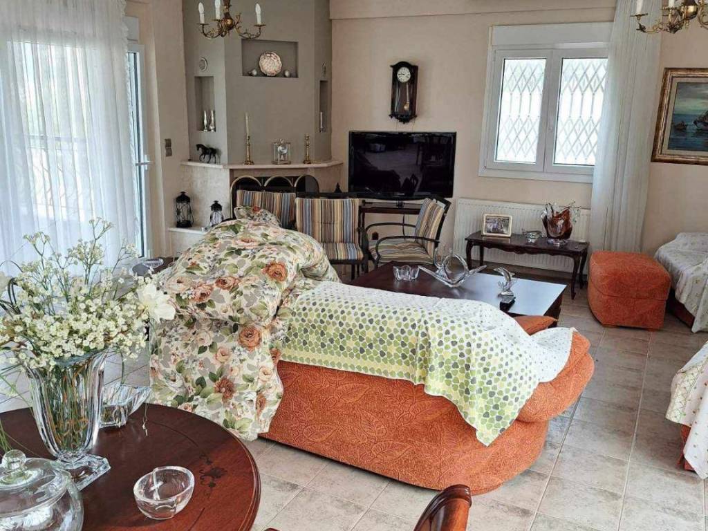 Πωλείται πολυτελής Έπαυλη. Είναι χτισμένο 2010 σε οικόπεδο 2700τμ με όλες τις σύγχρονες προδιαγραφές. Διαθέτει ανεξάρτητο ισόγειο χώρο αποτελούμενο απο ένα μεγάλο πολύ φωτεινό σαλόνι με δάπεδα απο μάρμαρο, τζάκι, WC, αποθήκη και ένα δωμάτιο. Στο δεύτερο επίπεδο μεγάλη σαλοκουζηνα λουξ, WC, τζάκι, και αποθήκη, και ηλεκτρικά παράθυρα σε όλους τους χώρους, 5 κρεβατοκάμαρες. Υπάρχει εσωτερικό γκαράζ με πρόσβαση στο ισόγειο χώρο.