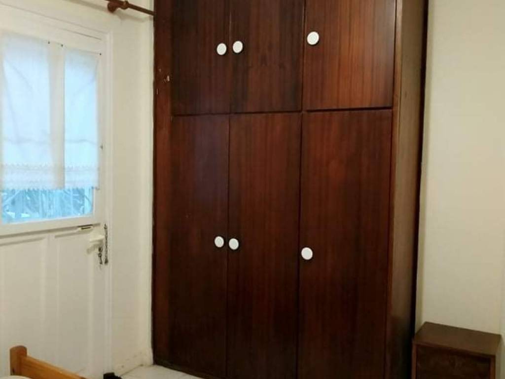 Ενα υπνοδωμάτιο, κουζίνα, ψυγείο, ηλεκτρικό κουζινάκι, πλυντήριο ένα διπλό κρεβάτι, κομοδίνο, γραφείο, απλώστρα,, μπάνιο, σαλόνι, ηλεκτρικά εξώφυλλα. Είναι ήσυχο διαμέρισμα στο πίσω μέρος της πολυκατοικίας.Το διαμέρισμα είναι ανακαινισμένο.