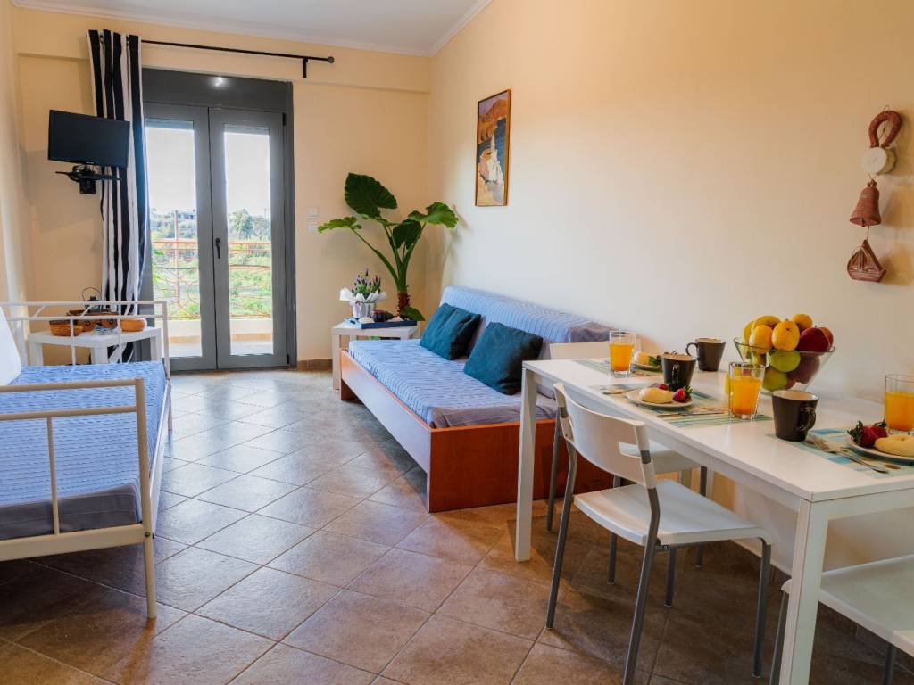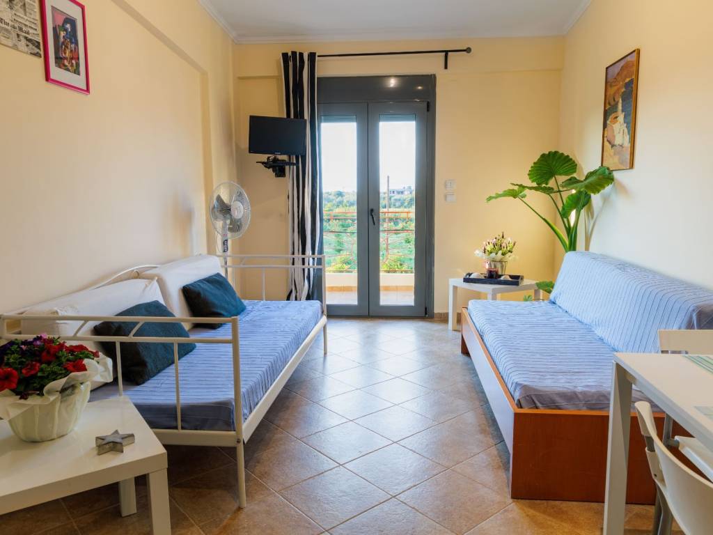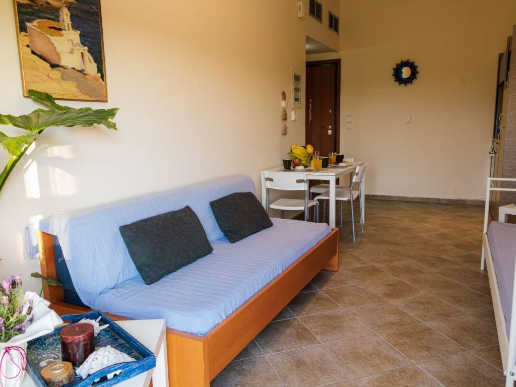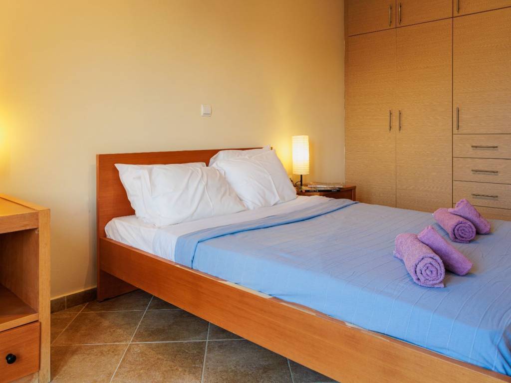 Το διαμέρισμα είναι ευάερο, ευήλιο με θέα και άμεση πρόσβαση στην πισίνα και πλήρως επιπλωμένο. Διαθέτει 1 υπνοδωμάτια με μπαλκόνι, ένα σαλόνι με μπαλκόνι και 2 καναπέδες / κρεβάτια, ένα μπάνιο, μιά κουζίνα πλήρως λειτουργική και εξοπλισμένη. Ντουλάπες στα υπνοδωμάτια . A/C inverter. Έχει πρόσβαση σε κοινόχρηστη για το συγκρότημα κατοικιών πισινα και απέχει 70μ από τη θάλασσα