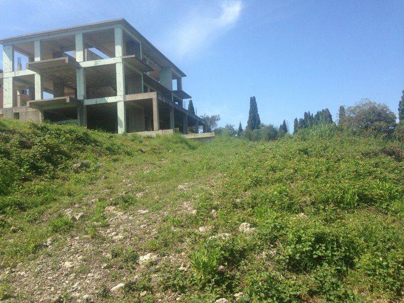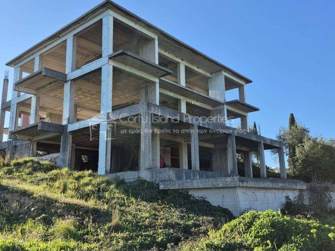 Μόλις 3χλμ από το κέντρο της Πόλης στο προάστιο Βρυώνη, τοποθεσία Τσάρου στην κορυφή του λόφου σε ένα οικόπεδο 1860τμ περίπου είναι κτισμένη μια οικοδομή συνολικού εμβαδού 680τμ. Η μοναδική θέση του στην κορυφή του λόφου του δίνει θέα αμφιθεατρική, στην Πόλη της Κέρκυρας, στο αεροδρόμιο, το Ποντικονήσι, την Λίμνη του Χαλικιόπουλου, και την καταπράσινη φύση της Κέρκυρας. Έχει πολύ καλό προσανατολισμό καθώς μπορεί κάποιος να απολαύσει την ανατολή και τη δύση του ηλίου. Το ακίνητο είναι σε 4 επίπεδα) Το υπόγειο αποτελείται από 2 εννιαίους χώρους των 30 τμ έκαστος, που μπορούν να χρησιμοποιηθούν σαν αποθήκες-μηχανοστάσια και γενικά βοηθητικοί χώροι.2) Το ισόγειο είναι 200τμ και μπορεί να χωριστεί σε διαμερίσματα ανάλογα με τις ανάγκες του αγοραστή . 3) Ο 1ος και ο 2ος όροφος είναι επίσης 200 τμ ο καθένας και εκτός από διαμερίσματα μπορούν να γίνουν δύο μεζονέτες με πολύ ωραία θέα.Η οικοδομή είναι κτισμένη με τα καλύτερα υλικά και προδιαγραφές γιατί προορίζονταν για ιδιοχρησία. Υπάρχουν έτοιμα φρεάτια για ασανσέρ από το ισόγειο ως τον 2ο όροφο. Στο οικόπεδο υπάρχουν επίσης τα μπετά για 2 πισίνες, 15τμ. έκαστη . Επίσηε το οικόπεδο έχει περεταίρω δόμηση 400τμ.Στο παραπάνω ακίνητο έχουν γίνει όλα τα μπετά της οικοδομής και είναι πληρωμένα όλα τα έξοδα ΙΚΑ κλπ.