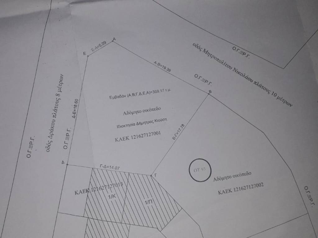 προνομιακό οικόπεδο στην πρώτη παράλληλο από τον παραθαλάσσιο δρόμο με μικρή κλίση,πολύ κοντά στην πλαζ Ροδιές. Στη γωνία των οδών Δράκου και Μητροπολίτου Νικολάου χωρίς στοά.