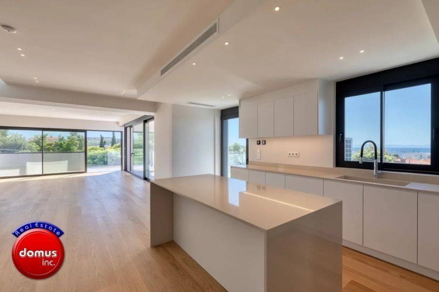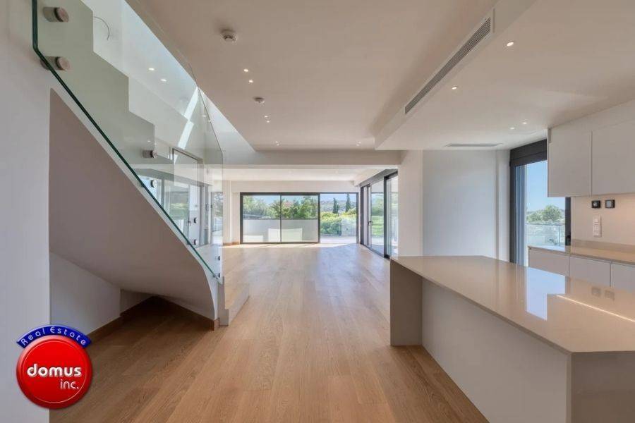Βούλα πολυτελής ρετιρέ minimal design μεζονέτα 3ου και 4ου ορόφου 204 m2 με πανοραμική θέα στην θάλασσα και roof garden. Έτος κατασκευής 2025 με smart home προδιαγραφές. Είναι διαμορφωμένη σε 2 επίπεδα ( 3ος όροφος 133 m2 και 4ος όροφος 71 m2) τα οποία επικοινωνούν με ασανσέρ και εσωτερική σκάλα. Διαθέτει πολύ άνετο ψηλοτάβανο χώρο υποδοχής με δρύινα δάπεδα και μεγάλα ανοίγματα, τζάκι, open plan κουζίνα με πάγκο corian και εντοιχισμένες ηλεκτρικές συσκευές, 3 υπνοδωμάτια master ,3 μπάνια, 1 WC με πλακάκι από πορσελάνη, αυτόνομη ενδοδαπέδια θέρμανση με αντλία θερμότητας, φωτοβολταικά panels, VRV κλιματισμό, ηλιακό , σύστημα συναγερμού με κάμερες , μεγάλες βεράντες με πλακάκια από γρανίτη , αποθήκη , 2 υπόγειες θέσεις garaze. Βρίσκετε σε εξαιρετική θέση απέναντι από πάρκο.