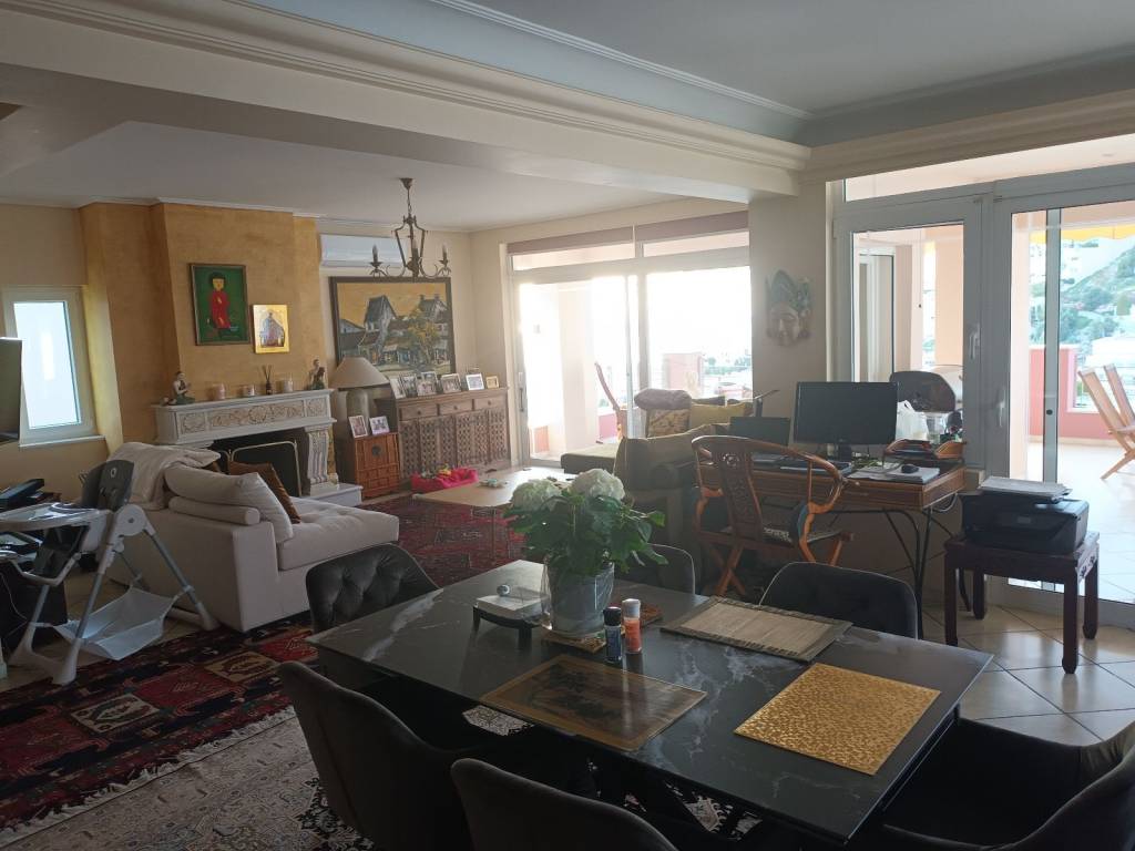 Εξαιρετικη μοναδικη μονακατοικια κατασκευη το 2004 και ανακαινισμενη με καινουρια διπλα τζαμια με pvc και σιτες σε ολο το σπιτι. Το σπιτι αποτελειται απο 3 μοναδικα επιπεδΑ τα οποια εκτος απο τις μαρμαρινες σκαλες τα συνδεει και ενα πολυτελεστατο ασανσερ. Στο πανω επιπεδο θα αντικρυσεις μπαινοντας ενα τεραστιο τετραγωνισμενο σαλονι με τζακι η αισθηση ειναι μοναδικη καθοσον με τα τεραστια ανοιγματα στις μπαλκονοπορτες εχεις την αισθηση οτι πετάς πανω απο τον λοφο του Πανοραματος με την μαγικη θεα στην θαλασσα του Σαρωνικου κολπου. Η κουζινα πρακτικη και ωραια ερχεται να ολοκληρωσει το σκηνικο. Η απιστευτη μαγικη βεραντα ειναι ουσιαστικα μια προεκταση του καθιστικου αφηνοντας τον καθε επισκεπτη αναυδο ατενιζοντας το απιστευτο φυσικο τοπιο. Στο ιδιο επιπεδο υπαρχει το wc επισκεπτων. Κατεβαινοντας στο επομενο επιπεδο οδηγησε σει 3 υπνοδωματια εκ των οποιων το ενα μαστερ με μπανιο και δικο του τζακι.Το σκηνικο στην βεραντα παραμενει το ιδιο και καλυτερο. Τελος στο τελευταιο επιπεδο υπαρχει ενας τερασστιος χωρος καθιστικο με υπνοδωματιο με την ιδια εκπληκτικη θεα Το σπιτι διαθετει αυτονομη θερμανση με αντλια θερμοτητας,κλιματιστικα,αποθηκες,parking ηλεκτρικη πορτα parking,μαρμαρινες σκαλες,3 τζακια,σκαλιστες πορτες σε ολο το σπιτι απο την ινδονησια,ηλιακο θερμοσιφωνα