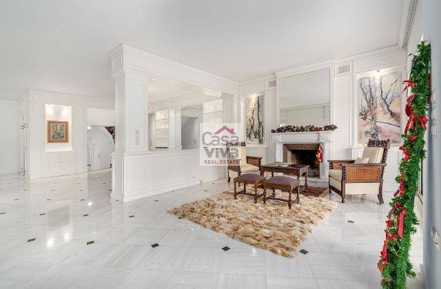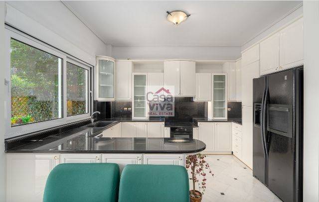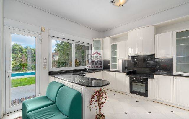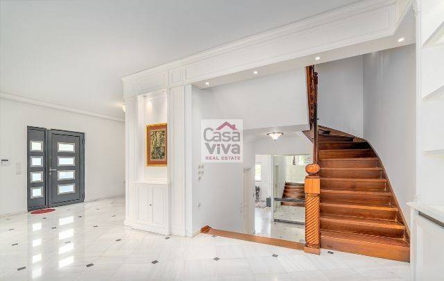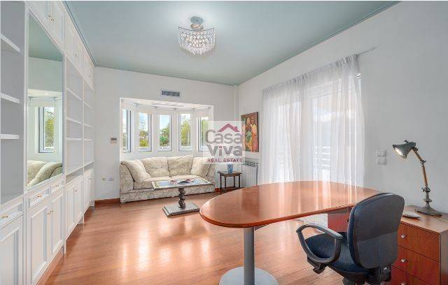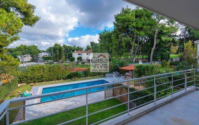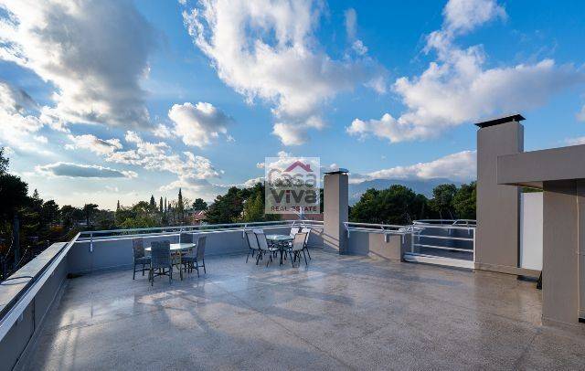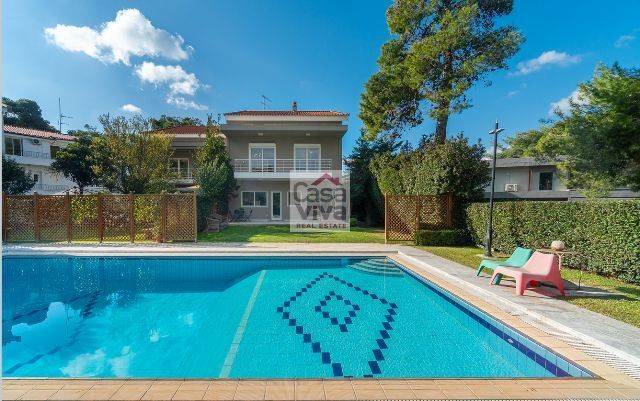 ΕΚΑΛΗ, Εξαιρετική θέση, Μεζονέτα 500 τ.μ., 3 επιπέδων συν σοφίτα με εσωτερικό ασανσέρ, κατασκευής του 2005, σε οικόπεδο δύο κατοικιών, με κοινόχρηστη πισίνα και μεγάλο κήπο αποκλειστικής χρήσης, πολύ φωτεινή διαμπερής, με ωραία ανοίγματα και μεγάλες βεράντες περιμετρικά, εντυπωσιακοί χώροι υποδοχής, μεγάλο σαλόνι με τζάκι, μαρμάρινα δάπεδα Διονύσου, χώρος τραπεζαρίας, ανεξάρτητη μεγάλη κουζίνα με εντοιχισμένες ηλεκτρικές συσκευές και χώρο καθημερινού φαγητού, wc, ο 1 ος όροφος αποτελείται από 4 υ/δ (1 master), με δρύινα δάπεδα, 2 μπάνια, μεγάλη σοφίτα με δικό της μπάνιο και πρόσβαση σε βεράντα, ανεξάρτητο φωτεινό playroom με μεγάλο χώρο καθιστικού, τζάκι, bar, μπάνιο, δωμάτιο υπηρεσίας με δικό του μπάνιο, αυτονομία θέρμανσης ανά επίπεδο, boiler, ηλιακός, κλιματισμός, διπλά τζάμια, σίτες, ηλεκτρικά ρολά, συναγερμός, πόρτα ασφαλείας, 2 θέσεις κλειστό πάρκιν, πολλοί αποθηκευτικοί χώροι., τιμή 4.200€ (2467).
