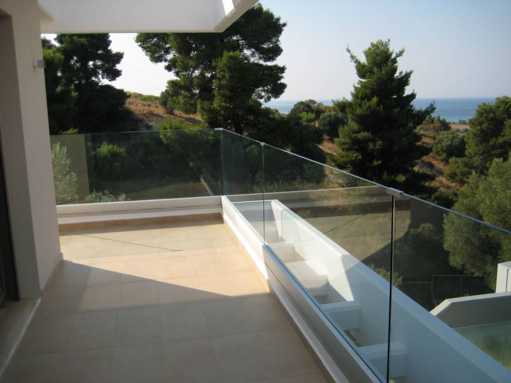 ΠΟΥΛΙΟΎΝΤΑΙ ΒΙΛΕΣ ΣΤΗΝ ΠΕΡΙΟΧΗ ΓΛΑΡΟΚΑΒΟΣ ΠΕΥΚΟΧΩΡΙΟΥ ΧΑΛΚΙΔΙΚΗΣ. ΔΙΟΡΟΦΕΣ ΚΑΤΟΙΚΙΕΣ ΜΕ ΥΠΟΓΕΙΟ, ΥΠΕΡΠΟΛΥΤΕΛΟΥΣ ΚΑΤΑΣΚΕΥΗΣ ΥΨΗΛΩΝ ΠΡΟΔΙΑΓΡΑΦΩΝ ΜΕ ΙΔΙΩΤΙΚΕΣ ΠΙΣΙΝΕΣ ΚΑΙ ΣΤΕΓΑΣΜΕΝΟΥΣ ΧΩΡΟΥΣ ΣΤΑΘΜΕΥΣΗΣ. ΥΠΟΓΕΙΟ Playroom, Αποθηκευτικός χώρος, Λεβητοστάσιο. Οι επιστρώσεις δαπέδων αποτελούνται από ματ γρανιτοειδείς πλάκες διαστάσεων 33Χ66 ZEROSEI ιταλικής προελεύσεως. ΙΣΟΓΕΙΟ Σαλοκουζίνα, Καθιστικό, WC σε διαφορετικό επίπεδο. Οι επιστρώσεις δαπέδων αποτελούνται από στιλπνές γρανιτοειδείς πλάκες διαστάσεων 60Χ60 RIVIERA MOKA ιταλικής προελεύσεως. ΟΡΟΦΟΣ Δωμάτια 3 , χολ, και μπάνιο. Οι επιστρώσεις δαπέδων αποτελούνται από γρανιτοειδείς πλάκες διαστάσεων 60Χ60 GRAFICS IVORY ιταλικής προελεύσεως. ΚΟΥΦΩΜΑΤΑ Εξωτερικά κουφώματα Εξωτερικά κουφώματα άριστων προδιαγραφών της γερμανικής εταιρίας schuco η της εταιρίας Finstral στη νέα μοντέρνα σειρά χρωμάτων sample η λευκή πέρλα με ανασυρόμενες η ανοιγόμενες με ανάκληση μπαλκονόπορτες βαρέως τύπου και ενεργειακούς υαλοπίνακες . Εσωτερικά κουφώματα Εσωτερικές ιταλικές πόρτες μοντέρνας αντίληψης ΚΟΥΖΙΝΑ Γωνιακή κουζίνα μήκους 3,60 ιταλικής κατασκευής και προέλευσης από λάκα και χρωματισμένο τζάμι σε συγγενή απόχρωση της λάκας καθώς και ντουλάπια ίδιου μήκους και ιδίων υλικών με αμορτισέρ και μηχανισμούς συρταριών του οίκου VA VITALI. ΜΠΑΝΙΑ(WC) ΙΣΟΓΕΙΟ Οι τοίχοι υπενδεδυμένοι με πλακάκια MARENCO ιταλικής προέλευσης , τοποθετημένα με φαλτσογωνίες . Είδη υγιεινής της γερμανικής εταιρίας VILLEROY & BOCH και Liaison με εντοιχιζόμενο καζανάκι και κρεμαστή λεκάνη. Ντουζιέρα χτιστή υπενδεδυμένη με γυάλινη ψηφίδα GLASS MOSAIC, στήλη υδρομασάζ και καμπίνα από κρύσταλλο. ΟΡΟΦΟΣ Οι τοίχοι υπενδεδυμένοι με πλακάκια ιταλικής προέλευσης ANDE BIANCO τοποθετημένα με φαλτσογωνίες . Είδη υγιεινής της γερμανικής εταιρίας VILLEROY & BOCH με εντοιχιζόμενο καζανάκι και κρεμαστή λεκάνη με μπανιέρα CARRON GARONITE βαρέως τύπου, ασύμμετρη με υδρομασάζ, διαστάσεων 1.55X0.95 της εταιρίας Carron. ΣΚΑΛΕΣ Μάρμαρα 3cm με μουρέλο 180ο σε μπέζ απόχρωση ιταλικά τύπου καρναζέικο επενδύει τις σκάλες πρώτου και δευτέρου ορόφου. ΚΙΓΚΛΙΔΩΜΑΤΑ Τα κιγκλιδώματα των μπαλκονιών αναπτύσσονται περιμετρικά και αποτελούνται από γυαλί 10cm με μεμβράνη ασφαλείας. ΘΕΜΕΛΙΩΣΗ-ΦΕΡΩΝ ΟΡΓΑΝΙΣΜΟΣ Οπλισμένο σκυρόδεμα από χάλυβα ελληνικής κατασκευής αντισεισμικής θωράκισης ΣΙΔΕΝΟΡ S500s και σκυρόδεμα κατηγορίας C 20/25 INTERBETON. Κατασκευή της οικοδομής από συνήθεις ξυλότυπους κατά το μεγαλύτερο μέρος και εμφανή μπετά στις όψεις. ΠΕΡΙΒΑΛΛΟΝ ΧΩΡΟΣ Διαμόρφωση περιβάλλοντος χώρου με φυτά και χλοοτάπητα, με αυτόματο πότισμα καθώς και διαμόρφωση φυτικού τοίχους για ιδιωτικοποίηση ιδιοκτησιών ΠΙΣΙΝΑ Πισίνα διαστάσεων 10Χ50 συμβατικής κατασκευής (οπλισμένο σκυρόδεμα) με κανάλι υπερχείλισης και μηχανήματα του οίκου ASTRAL SA επενδυμένη με υαλωμένη ψηφίδα MOSAIC και επωξυδικά υλικά δυο συστατικών. Εγκατάσταση συστήματος συναγερμού Caddix με 2 ανιχνευτές χώρων και εσωτερικές παγίδες σε κάθε κούφωμα. Περιμετρικός έλεγχος συγκροτήματος από κάμερες ασφαλείας υψηλής ευκρίνειας με δυνατότητα ελέγχου του συγκροτήματος μέσω ιντερνέτ από οπουδήποτε. ΘΕΡΜΑΝΣΗ-ΨΥΞΗ Θέρμανση με μηχανήματα της εταιρίας KITURAMI χαμηλής όχλησης και εξαιρετικά χαμηλών ρύπων με προεγκατάσταση παροχών κλιματιστικών συσκευών καθώς και προεγκατάσταση ηλιακού θερμοσίφωνα.