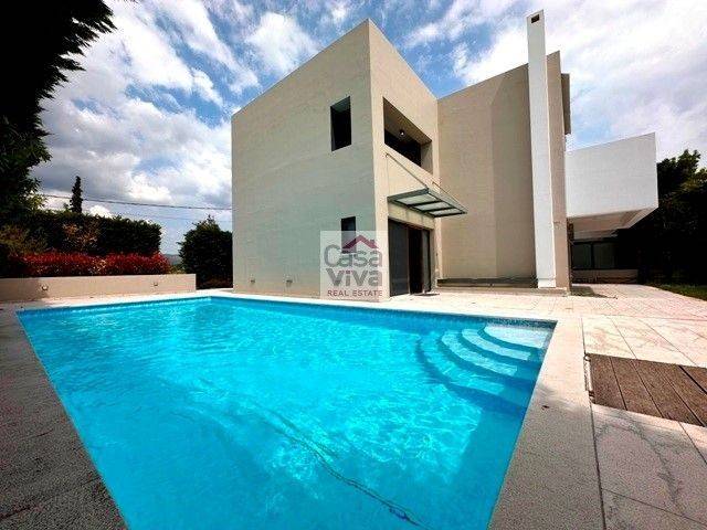 ΕΚΑΛΗ, σε καλή κατάσταση μονοκατοικία 340 τ.μ., κατασκευή του 2010, με ωραίο κήπο και πισίνα, μοντέρνας- minimal αισθητικής, 3 επιπέδων με εσωτερικό ασανσέρ, φωτεινή, διαμπερής, ωραίοι χώροι υποδοχής, τζάκι, δρύινα δάπεδα παντού, χώρος τραπεζαρίας, ανεξάρτητη κουζίνα Miele με ηλεκτρικές συσκευές, wc, στον όροφο έχουμε 3 υ/δ (1 master), 2 μπάνια, ωραίο playroom με χώρο καθιστικού, τζάκι, δωμάτιο υπηρεσίας ή ξενώνας, 1 μπάνιο, πλήρως ανεξάρτητη θέρμανση με δικό της λέβητα, ενδοδαπέδια και αυτονομία ανά όροφο, boiler, κεντρικός κλιματισμός, διπλά τζάμια, σίτες, συναγερμός, πόρτες ασφαλείας, αποθήκη, 2 θέσεις υπόγειο πάρκιν.Δυνατότητα αποστολής φωτογραφικού υλικού μέσω e-mail., τιμή 1.100.000€ (446).