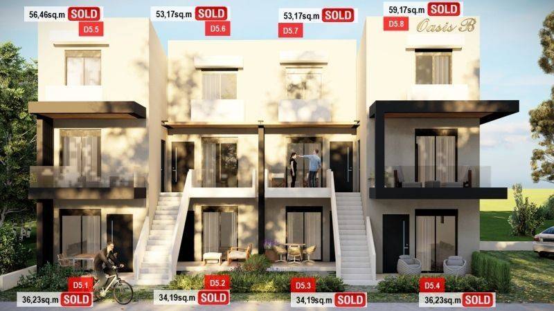• 12 Διαμερίσματα ορόφου με σοφίτα από 53,13τ.μ έως 59,19τ.μ, που αποτελούνται από σαλοκουζίνα, 2 υπνοδωμάτια, 2 μπάνια.