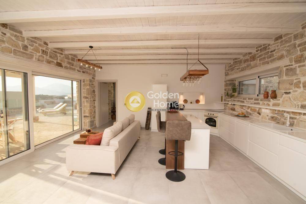 Κομψή, ευρύχωρη πολυτελής πέτρινη βίλα (ισόγειο) με εκπληκτική θέα και προσεγμένη άνεση σε κορυφαία τοποθεσία, στα Πιτσίδια του δήμου Φαιστού, με φανταστικά ηλιοβασιλέματα, μαγευτική θέα στη θάλασσα, εντυπωσιακό βουνό και την έκταση της Μεσαράς. Η πανέμορφη αυτή κατοικία προσφέρει χώρο για κοινές ή ιδιωτικές στιγμές. Ο ευρύχωρος, φωτεινός χώρος καθιστικού/κουζίνας (47 τ.μ.) με νησίδα κουζίνας καλωσορίζει και εντυπωσιάζει με την αισθητική, τον έξυπνο σχεδιασμό και την εκπληκτική θέα στη θάλασσα. Καλά μελετημένα: 2 ξεχωριστά και ευρύχωρα υπνοδωμάτια με king-size κρεβάτια προσφέρουν άφθονο χώρο, θέα στη θάλασσα και άμεση πρόσβαση στην ευρύχωρη βεράντα με την φιλόξενη πισίνα υπερχείλισης με θαλασσινό νερό, τη συναρπαστική θέα και πολλές γωνιές για να χαλαρώσετε. Τα μπάνια είναι εξοπλισμένα με καμπίνα ντους. Το πλάτος της πόρτας είναι 86cm (εσωτερική διάσταση). Με μεγάλη προσοχή στη λεπτομέρεια, είναι ένα ακίνητο χωρίς εμπόδια, που μπορεί να χρησιμοποιηθεί και ως μόνιμη κατοικία. Αυτό το ακίνητο είναι ένα πραγματικό συλλεκτικό αντικείμενο. Η τοποθεσία είναι μοναδική, γιατί έχετε φανταστική θέα στο Λιβυκό Πέλαγος, το πανόραμα του βουνού συμπεριλαμβανομένου του Ψηλορείτη και μακριά στη Μεσαρά. Αυτό σημαίνει ότι μπορείτε να απολαύσετε τόσο το ηλιοβασίλεμα όσο και την ανατολή του ηλίου το καλοκαίρι. Βασικά χαρακτηριστικά του ακινήτου: - Όλο το ακίνητο βρίσκεται στο ισόγειο - Ολόκληρο το concept λαμβάνει υπόψη πολύ χώρο, ώστε να μπορείτε να μετακινηθείτε με αναπηρικό καροτσάκι ή περιπατητή (πλάτος πόρτας 86 cm) - Όλα τα υλικά είναι υψηλής ποιότητας και πληρούν τις τελευταίες προδιαγραφές - Με μάτι για λεπτομέρειες - Έξυπνα σχεδιασμένο (π.χ. τα υπνοδωμάτια χωρίζονται από την ανοιχτή κουζίνα-καθιστικό) - Διάφοροι άνετοι χώροι καθιστικού - Ενιαίο σαλόνι κουζίνα και τα δύο υπνοδωμάτια έχουν θέα στη θάλασσα και άμεση πρόσβαση στη βεράντα - Έπιπλα/αντικείμενα ατομικά σχεδιασμένα και χειροποίητα (π.χ. ποτηροθήκη με φως πάνω από το νησί της κουζίνας, 2 καθρέφτες στα μπάνια, 2 τραπεζαρίες, θήκη για χαρτί υγείας στον τοίχο) - Καθιστικό 280τμ - 2 ευρύχωρα υπνοδωμάτια (24τμ) - 2 μπάνια με ιδιωτικό μπάνιο - 1 τουαλέτα επισκεπτών - Αποθήκη - Πισίνα υπερχείλισης (8x4m, αλάτι) - Δεξαμενή νερού - Ζεστό νερό: ηλιακό - Ενδοδαπέδια θέρμανση - Ευρύχωρη βεράντα - Μυστικότητα - 2 θέσεις στάθμευσης (1 στεγασμένη) - Υπαίθριο ντους - Έτος κατασκευής 2022 Πώληση, Μονοκατοικία, Μπάνια: 2, WC: 1, Εμβαδόν: 280 τ.μ., Δωμάτια: 2, Έτος κατασκευής: 2022, Εξοχική κατοικία, Κλιματισμός, Πισίνα, Θέα, Βεράντα, Επιπλωμένο, Κήπος, Playroom, Πόρτα ασφαλείας, Ηλιακός θερμοσίφωνας, Συναγερμός, Αποθήκη, Όροφος: Ισόγειο, Κατάλληλο για Επαγγ. Χρήση, Πρόσοψης, Επιτρέπονται κατοικίδια, Δορυφορική κεραία, Διαμπερές, Φωτεινό, Κουζίνες: 1, Κουφώματα: Αλουμινίου, Τύπος δαπέδων: Πλακάκι, Επιφάνεια oικοπέδου: 1166 τ.μ., Πρόσβαση για ΑΜΕΑ, Eπίπεδα: 1, Θέρμανση: Αυτόνομη θέρμανση, Πρόσβαση από: Άσφαλτο, Ζώνη: Οικιστική ζώνη, Επενδυτικό, Ενδοδαπέδια θέρμανση, Ενεργειακή κλάση: Α, Προσανατολισμός: Δυτικός, Ρεύμα: Μονοφασικό, Απόσταση απο θάλασσα: 5