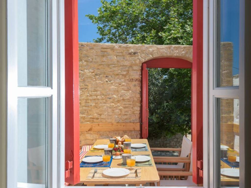 Πραγματοποιώντας ένα ταξίδι στο χρόνο, σταματάμε πίσω στις αρχές του 19ου αιώνα. Στην αμφιθεατρική πλατεία Αυγερινού στο νησί της Σύμης, συναντάμε ένα παραδοσιακό σπίτι, κατασκευασμένο με μαεστρία από τους Συμιακούς τεχνίτες. Σήμερα, το 2015, τα ερείπια αυτού του λαϊκού πέτρινου σπιτιού, έχουν μετατραπεί σε ένα παραδοσιακό κατάλυμα, το οποίο, σεβόμενο τις παραδοσιακές τεχνικές, είναι πρόθυμο να υποδεχτεί τους ταξιδιώτες, που επιθυμούν να γνωρίσουν τις ομορφιές της Σύμης. Το σπίτι διαθέτει όλες τις απαραίτητες προδιαγραφές για τη διαμονή ακόμα και πολύτεκνων οικογενειών, με παιδιά. Ένα κεντρικό σαλόνι με τζάκι, μια ευρύχωρη κουζίνα, δύο μπάνια και τέσσερα ευρύχωρα υπνοδωμάτια, είναι για να παρέχουν ηρεμία και να καλύπτουν όλες τις καθημερινές ανάγκες που μπορεί να έχει μια οικογένεια. Εκτός από τα παραπάνω, αξίζει να αναφέρουμε το μπαλκόνι και την αυλή, από όπου η θέα στη θάλασσα, η ομορφιά και η ησυχία της πλατείας, συμβάλλουν στην ηρεμία σας και την απόλαυση των διακοπών σας. Σας καλωσορίζουμε, λοιπόν, για να αφηγηθούμε την ιστορία που πρόκειται να αφηγηθεί ο «Πλάτανος», τη νέα δεκαετία του 21ου αιώνα. Η Villa Platanos, αποτελεί σαφή απόδειξη της δεξιοτεχνίας, της δεξιοτεχνίας και της κομψότητας των Συμιακών μαστόρων, οι οποίοι συνεχίζουν να εργάζονται και να παράγουν τέτοια γλυπτά. Για την αναστήλωση του σπιτιού, όπου χρησιμοποιήθηκαν οι υπάρχουσες πέτρες των ερειπίων, ενώ διατηρήθηκε η παλιά τοιχοποιία όπου ήταν δυνατόν. Κυριαρχούν τα παραδοσιακά υλικά όπως η πέτρα, το ξύλο, τα κεραμίδια και οι ακανόνιστοι σχιστόλιθοι της Σύμης. Ωστόσο, για λόγους κυρίως στατικούς, για την πυροπροστασία, τη θερμομόνωση και την υγιεινή, χρησιμοποιήθηκαν σύγχρονα υλικά, όπως άοπλο και οπλισμένο σκυρόδεμα, μονωτικά υλικά, κεραμικά πλακίδια κ.λπ. Τα σύγχρονα αυτά υλικά, χρησιμοποιήθηκαν για να μην αποδυναμωθεί η αίσθηση ότι το κτίριο αυτό, υπήρχε ήδη από τον προπερασμένο αιώνα. Η διαρρύθμιση του κτιρίου ακολουθεί, σε πολύ μεγάλο βαθμό, την παλιά οργάνωση των χώρων. Ωστόσο, τροποποιεί, με τον λιγότερο επαχθή τρόπο, τα μεγέθη και τις χρήσεις των χώρων, προκειμένου να ανταποκριθεί, όσο το δυνατόν περισσότερο, στις απαιτήσεις του 21ου αιώνα. Η υπόγεια δεξαμενή καθαρίστηκε από τα απορρίμματα και επισκευάστηκε, ώστε να συνεχιστεί η αποθήκευση του βρόχινου νερού. Αν και το νερό αυτό δεν επαρκεί για τις σημερινές ανάγκες ενός σπιτιού, συμπληρώνει με νερό το δίκτυο της πόλης, το οποίο πλέον φτάνει, σε καθημερινή βάση, στα σπίτια του χωριού. Το υπόγειο, που κάποτε ήταν αποθηκευτικός χώρος κάτω από το σοβά του ισογείου, μετά την εκβάθυνση, πήρε αρκετό ύψος για να σχηματίσει το λουτρό του ισογείου. Στο ισόγειο διατηρήθηκε η παραδοσιακή τσιμιά, δηλαδή το τζάκι με τις κόγχες και τα ντουλάπια εκατέρωθεν, που υποδηλώνουν τη χρήση του ως κουζίνα. Αυτό το δωμάτιο, λόγω του μεγέθους του, αποτελεί ένα μέρος όπου η οικογένεια θα μπορούσε να περάσει τον περισσότερο χρόνο. Μπορεί επίσης να χρησιμοποιηθεί ως χώρος ύπνου για μεγάλες οικογένειες, καθώς οι ξύλινοι καναπέδες, προσφέρουν απλόχερα μια ακόμη αποθήκη. Αυτή είναι η ατμόσφαιρα που επιδιώξαμε να αναβιώσουμε και για το λόγο αυτό διατηρήθηκε το τζάκι. Άλλωστε ο ξύλινος καναπές επισκευάστηκε, καθώς αντανακλά τη δεξιοτεχνία των ξυλουργών μιας άλλης εποχής -και που, ευτυχώς, διατηρούν ακόμα οι ντόπιοι τεχνίτες. Έτσι, αυτός ο καναπές, 