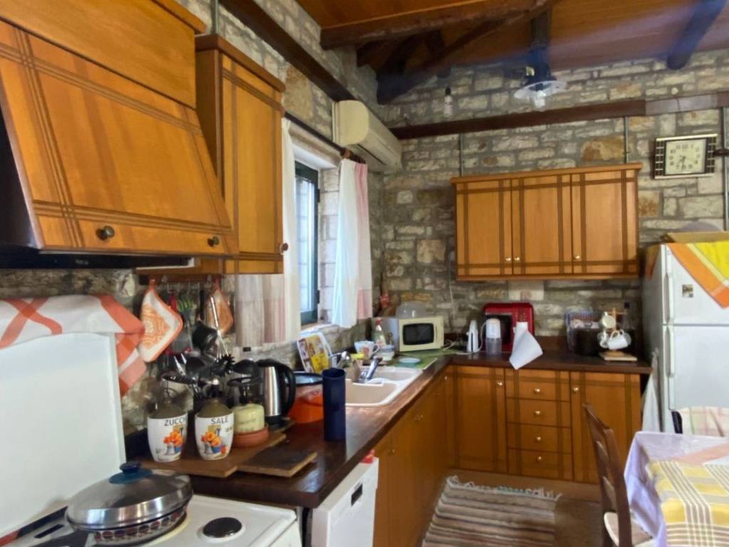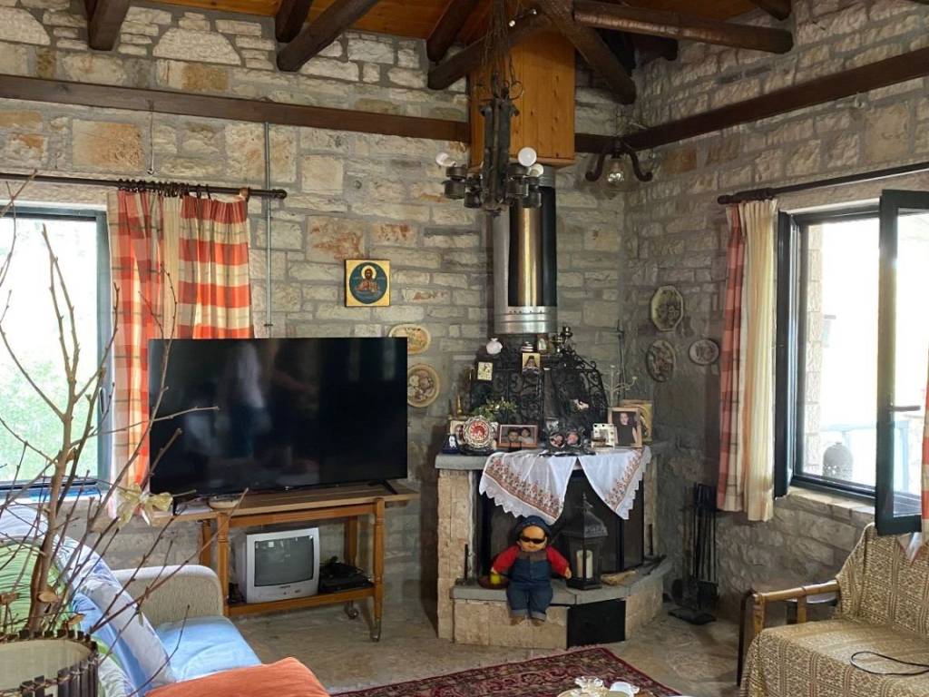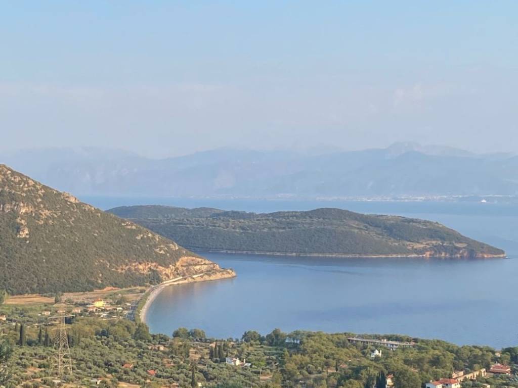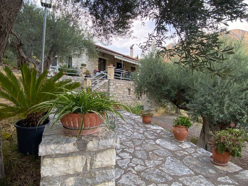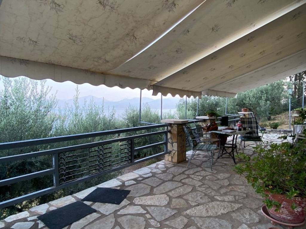 Πρόκειται για μια πετρόκτιστη μονοκατοικία, εξαιρετικής αρχιτεκτονικής σε οικόπεδο 2,5 στρεμμάτων.Η θέα είναι πανοραμική σε όλο τον Κορινθιακό αλλά και στο νησί Tριζόνια.Διαθετει διαμορφωμένο κήπο με διαφορετικά επίπεδα και σημεία που μπορείς να απολαύσεις τη θέα, με πετρόκτιστα πεζούλια στις ελιές του κήπου ,βρύσες,τρεχούμενο νερό, οπωροφόρα δέντρα κ.α.Διαθετει επίσης ένα ενιαίο χώρο με εμφανή ξύλινη στεγη,δαπεδο από πέτρα και εμφανείς πέτρινους τοίχους.Στα επιπλέον χαρακτηριστικά του ακινήτου είναι τα κουφώματα αλουμινίου με δίπλα τζάμια,ενεργειακο τζάκι,τεντες,δυο διαφορετικές εισόδους,ηλεκτρικες συσκευές.