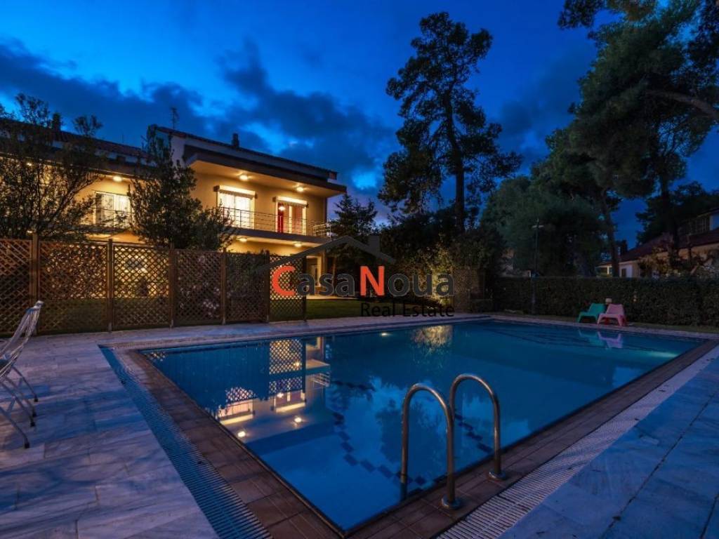 ΕΚΑΛΗ μεζονέτα 550 τ.μ., ισόγεια, κατασκευή 2003, με κήπο, ασανσέρ , πισίνα,. Επιβλητικοί χώροι υποδοχής με πρόσβαση σε κήπο, τζάκι, ανεξάρτητη μεγάλη κουζίνα με χώρο τραπεζαρίας και ηλεκτρικές συσκευές, wc, 5 υ/δ μεγάλα (2 master), 3 μπάνια μεγάλο playroom με καθιστικό και τζάκι, ξενώνας με μπάνιο, αποθηκευτικοί χώροι, 2 θέσεις υπόγειο παρκινγκ , .