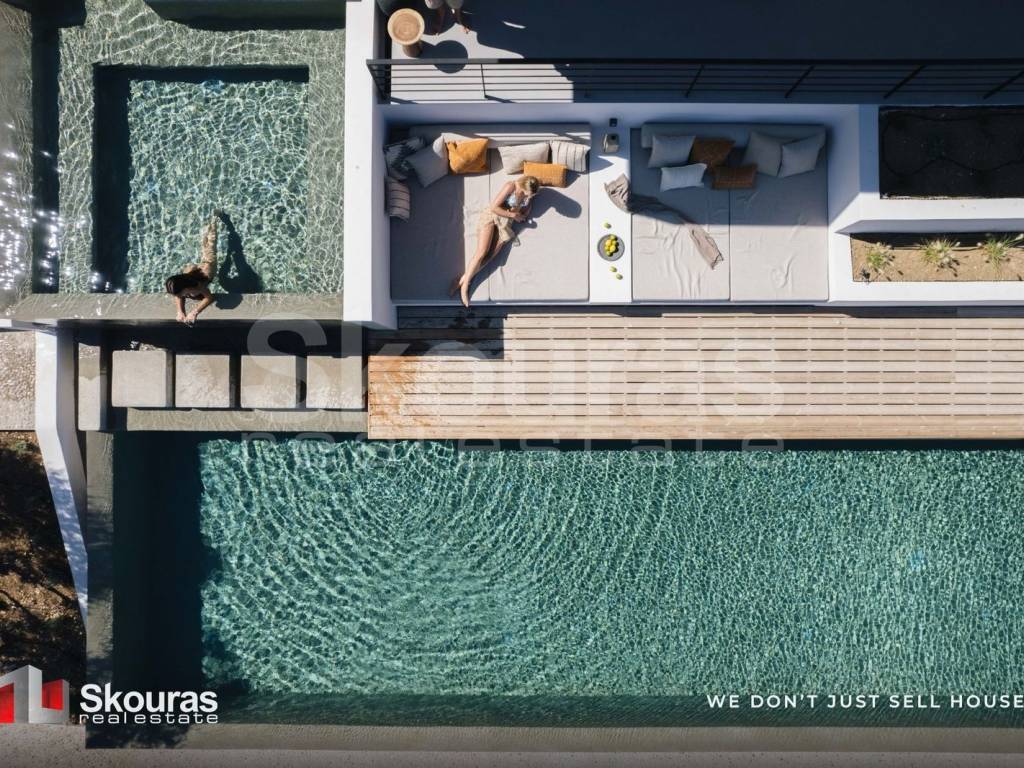 Πωλείται πολυτελής βίλα συνολικού εμβαδού 251,23 τ.μ., εντός ενός εντυπωσιακού οικοπέδου 4.191,92 τ.μ., που βρίσκεται σε μια από τις πιο γοητευτικές περιοχές της Λευκάδας. Το ακίνητο είναι υπερυψωμένο σε επικλινές οικόπεδο και προσφέρει μαγευτική θέα στον κόλπο της Λευκάδας, απολαμβάνοντας τη μοναδική φυσική ομορφιά του νησιού. Η βίλα, μόλις 940 μέτρα από την παραλία, συνδυάζει τη διακριτική πολυτέλεια με την αίσθηση της απόλυτης ιδιωτικότητας. Η master suite εντυπωσιάζει με το δικό της μπαλκόνι 27 τ.μ. που προσφέρει ατελείωτη θέα στη θάλασσα και ένα κομψό en suite μπάνιο. Στο ίδιο τμήμα του ακινήτου βρίσκεται πολυτελής κουζίνα με πλήρης εξοπλισμό σε ενιαία διαρρύθμιση με το καθιστικό, που αποπνέει άνεση κομψότητα και λειτουργικότητα. Το δεύτερο τμήμα του ακινήτου, συνδέεται με πέργκολα από καλαμωτή και φιλοξενεί πέντε υπνοδωμάτια, το καθένα με το δικό του μπάνιο, καθώς και δωμάτιο γυμναστηρίου με home cinema εμβαδού 47 τ.μ., παρέχοντας τον απόλυτο χώρο για χαλάρωση και ψυχαγωγία. Τα δύο τμήματα της βίλας συνδέονται με μια στυλάτη πέργκολα που περιλαμβάνει εξωτερική κουζίνα και σαλόνι, ιδανικά για απολαυστικά καλοκαιρινά βράδια με θέα την καταγάλανη θάλασσα. Στο νότιο άκρο του ακινήτου, η πισίνα με σύστημα υπερχείλισης ενσωματώνεται με το φυσικό τοπίο, συνοδευόμενη από jacuzzi και ξύλινο deck με ξαπλώστρες, προσφέροντας την τέλεια αίσθηση χαλάρωσης και ευεξίας. Η μαγευτική περιοχή της Λευκάδας, με τα κρυστάλλινα νερά, τα γραφικά τοπία και την απέραντη φυσική ομορφιά, συνδυάζεται μοναδικά με την πολυτέλεια και την άνεση της βίλας, δημιουργώντας μια απαράμιλλη ευκαιρία για απόλυτη διαβίωση. Skouras Real Estate