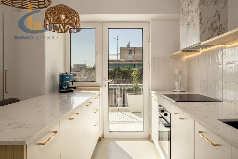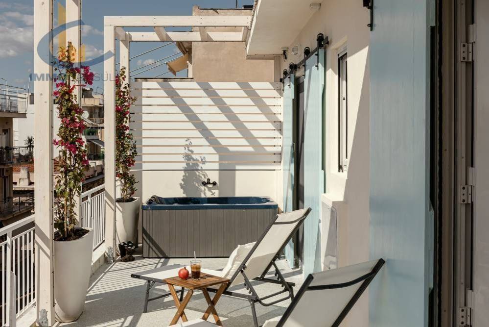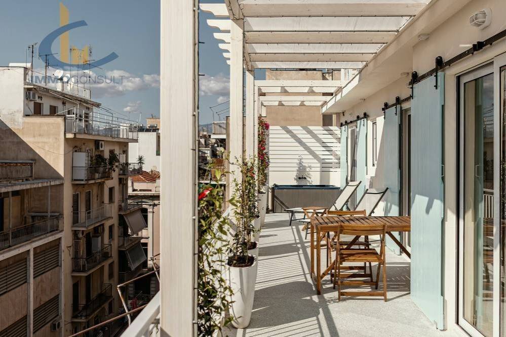 Πλ. Βικτωρίας: 5λ. από τον ΗΣΑΠ, σε κεντρικότατο σημείο, πλησίον αγοράς, Πωλείται πλήρως ανακαινισμένο ρετιρέ Διαμέρισμα στον 5ο όροφο, κατασκευής 1966, πλήρως επιπλωμένο και εξοπλισμένο με ηλεκτρικές συσκευές, ενδοδαπέδια θέρμανση, κλιματιστικά, τζακούζι στη βεράντα, καινούριο ασανσέρ, κουφώματα αλουμινίου, ηλιακό θερμοσίφωνα, ηλεκτρικό τζάκι, εξαιρετικά υλικά παντού, προσεγμένο, έτοιμο για επένδυση.