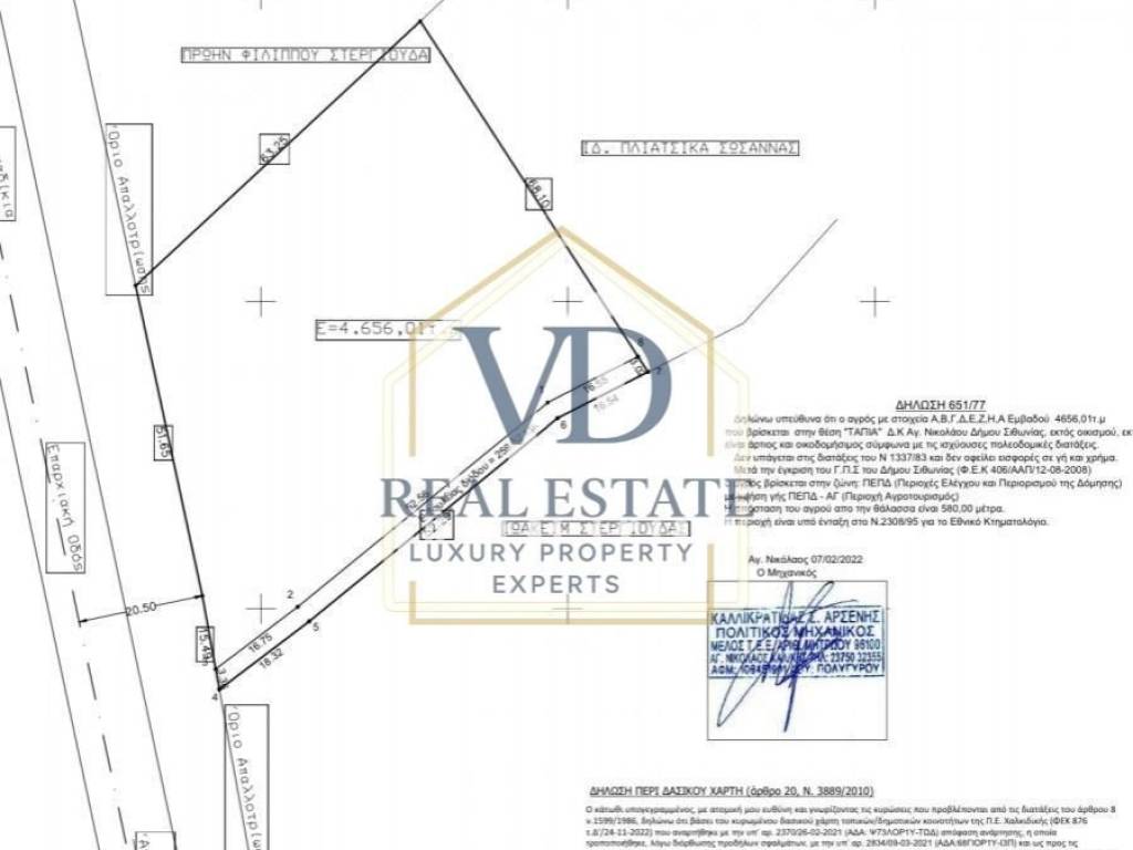 Κωδικός ακινήτου: 1-88 - Σιθωνία Άγιος Νικόλαος ΠΩΛΕΙΤΑΙ επικλινές αγροτεμάχιο συνολικής επιφάνειας 21600.00 τ.μ. Διαθέτει νερό, ρεύμα, πρόσοψη 51 μέτρα απόσταση από θάλασσα 450 μέτρα Τιμή: 585.000 € Πωλούνται τρία αγροτεμάχια με θέα στη θάλασσα και 51 μ πρόσοψη στο δρόμο. Το πρώτο αγροτεμάχιο είναι 4656,01 τμ, το δεύτερο 4926,23 τμ. Και το τρίτο 12000 τμ. Το αγροτεμάχιο έχει 70 ελιές περίπου διακοσίων ετών.