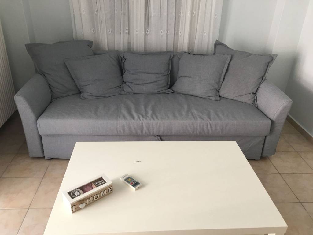 Διαμέρισμα 55 τ μ με ατομικό φυσικό αέριο 1 δωμάτιο 1 σαλόνι 1 κουζίνα και μπάνιο σε άριστη κατάστση επιπλωμένο κομπλέ όλα τα ηλεκτρικά και τηλεόραση κρεβάτι διπλό και καναπέ και κλιματισμός ελάχιστα κοινόχρηστα κεντρικά στην Περαία κιοντα σε κςταστήματα και μεσα μεταφοράς
