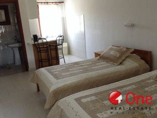 Η συνολική επιφάνεια του κτηρίου είναι 347 τ.μ., εντός οικοπέδου 360 τ.μ., και κατασκευάστηκε το 1997. Στο ισόγειο, υπάρχει ένα διαμέρισμα 63 τ.μ. με δύο υπνοδωμάτια και κουζινοτραπεζαρία. Στον πρώτο όροφο, θα βρείτε τέσσερα στούντιο, το καθένα 30 τ.μ., με κοινή μεγάλη βεράντα που προσφέρει σκιά και θέα στη θάλασσα. Επίσης, υπάρχει ένα διαμέρισμα 54 τ.μ. με δύο ανεξάρτητα υπνοδωμάτια και ιδιωτική βεράντα 30 τ.μ.