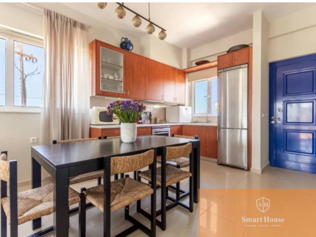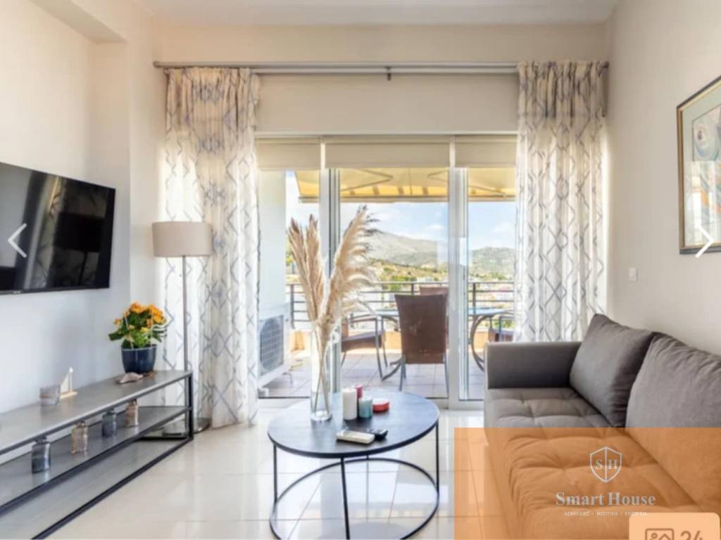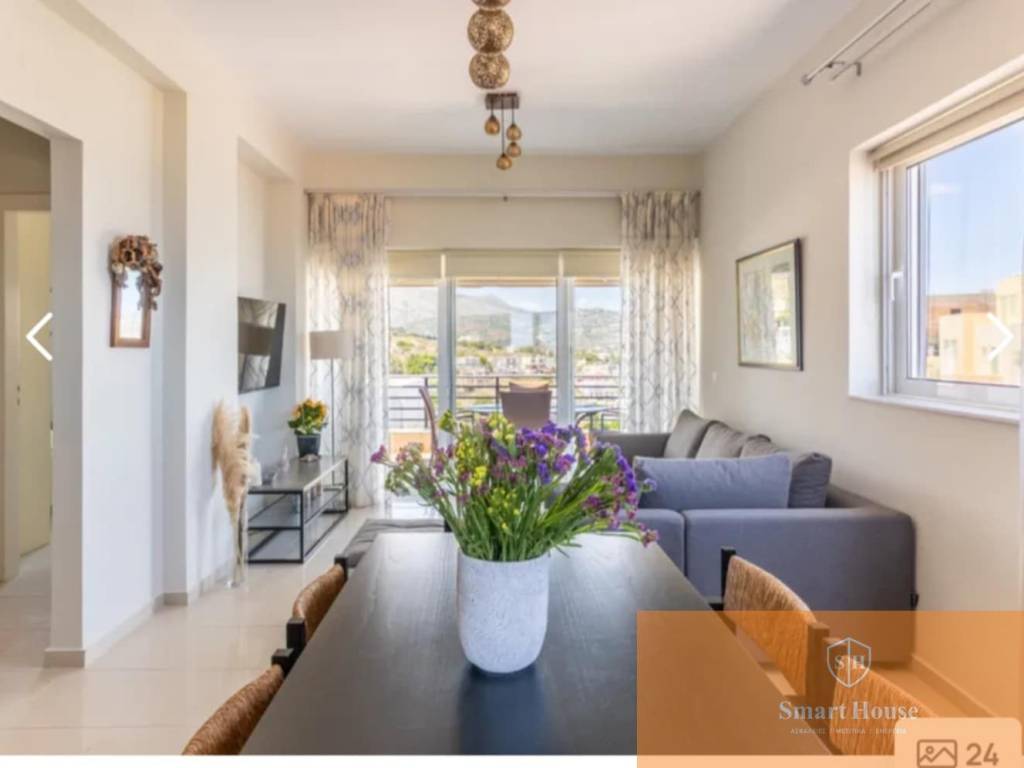 Επιπλωμένο και ηλεκτρικά εξοπλισμένο διαμέρισμα, 80τμ, σε ημιόροφο, με 3 πλευρές ανοιχτές που του χαρίζουν θέα Δυτικά προς Λυγαριά, και Βόρεια και ανατολικά προς το Κρητικό πέλαγος. Μεγάλη γωνιακή βεράντα (Βόρεια και Δυτικά) και αυλή (Βόρεια και Ανατολικά). Με 2 υπνοδωμάτια, που ανήκει σε οικισμό που διαθέτει κοινόχρηστη πισίνα με εστιατόριο, ιδιωτική παραλία και ιδιωτική μαρίνα, γήπεδο τένις, 24ωρη φύλαξη με φρουρό στην είσοδο του οικισμού. Σε 2' πρόσβαση στον ΒΟΑΚ τηλ 6932392504