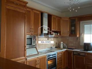 Κουζίνα: Εξοπλισμένη με εντοιχισμένα ντουλάπια (με έναν μόνο μηχανισμό σε μέτρια κατάσταση), απορροφητήρα, κεραμική κουζίνα, εντοιχισμένο φούρνο, πλυντήριο πιάτων και φούρνο μικροκυμάτων.