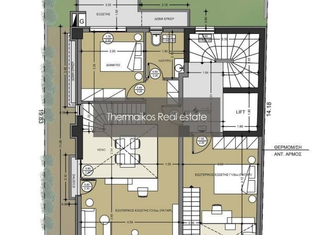 "Καλαμαριά - Νέα Κρήνη" Πωλείται νεόδμητη, Μεζονέτα, πρόσοψης 142.43τ.μ. (103,5 τ.μ. καθαρά, Γ2 στη κάτοψη). -Πρόκειται για ένα ιδιαίτερο εξαιρετικής κατασκευής φωτεινό ακίνητο. -Βρίσκεται στον 3ο-4ο όροφο με εσωτερική σκάλα, της οικοδομής με ασανσέρ. -Το ακίνητο αποτελεί μια αξιόλογη επιλογή για οικογένεια και εργαζόμενους. -Κατασκευάστηκε το 2023. -Αποτελείται από 2-3 υπνοδωμάτια με ντουλάπα, σαλόνι κουζίνα 2 μπάνια. -Επιπλέον διαθέτει βεράντα, αποθήκη υπογείου 4,64 τ.μ. και θέση στάθμευσης (με δυνατότητα αγορά). Στα εσωτερικά του στοιχεία αξίζει να σημειωθούν η θωρακισμένη πόρτα και ο συναγερμός. Διαθέτει κουφώματα αλουμινίου με διπλά τζάμια. Τα δάπεδα είναι από πλακάκια. Διαθέτει αυτόνομη θέρμανση με φυσικό αέριο (ατομική). Η ενεργειακή του κλάση είναι A+. -Βρίσκεται σε απόσταση 80μ. από τη θάλασσα. -Βρίσκεται κοντά σε στάση λεωφορείου, πάρκο και παραλία. -Με βάση τα χαρακτηριστικά του μπορεί να χαρακτηριστεί ως μια πολύ καλή επενδυτική επιλογή. -Τιμή πώλησης: 510000€. Το ακίνητο είναι άμεσα διαθέσιμο. Κωδικός ακινήτου: 9543 Για περισσότερα ακίνητα επισκεφθείτε την ιστοσελίδα μας http://www.thermaikosrealest.gr. Thermaikos Real Estate Κλεάνθους 39, Θεσσαλονίκη, Ελλάδα http://www.thermaikosrealest.gr info@thermaikosrealest.gr Τηλέφωνο: 2310900700 Κινητό: 6907219389, 6956139149 ΥΠΕΥΘΥΝΟΣ ΑΚΙΝΗΤΟΥ: ΣΑΛΒΑΡΗΣ ΓΙΩΡΓΟΣ Προσοχή! Για την υπόδειξη του ακινήτου είναι απαραίτητη η υπόδειξη της αστυνομικής ταυτότητας και του Α.Φ.Μ. σας σύμφωνα με τον Ν.4072/11-4-2012 ΦΕΚ 86 Α.