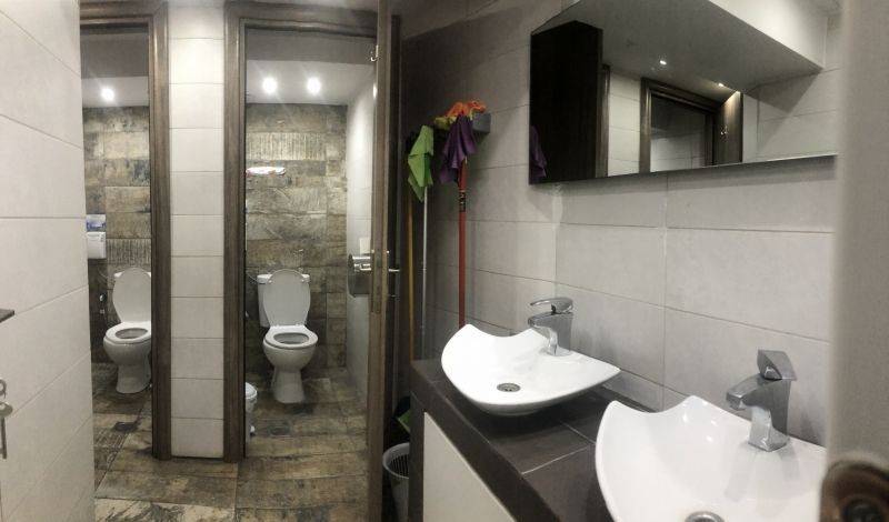Έχει δάπεδα από πλακάκια, μεγάλη γυάλινη πτυσσόμενη βιτρίνα με ηλεκτρικά ρολά ασφαλείας και αναδιπλούμενη τέντα σκίασης. Μπροστά από το κατάστημα υπάρχει μεγάλο πεζοδρόμιο.