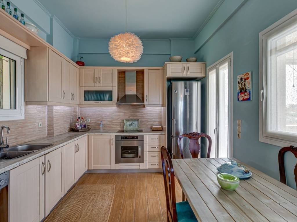 Στην Κυψέλη μόλις 10 λεπτά από την πόλη της Αίγινας βρίσκεται μια πολύ προσεγμένη και καλαίσθητη βίλα που ολοκληρώθηκε το 2012. Πρόκειται για μια μεζονέτα δύο επιπέδων με επιπλέον ανεξάρτητο στούντιο ημιυπογείου. Από την είσοδο του οικοπέδου 590 τ.μ. που περιβάλλεται με πετρόχτιστα τοιχεία εισερχόμαστε σε ένα όμορφο κήπο και την πλακοστρωμένη αυλή έχοντας στα δεξιά μας το BBQ και τον χώρο στάθμευσης. Η μεζονέτα δύο επιπέδων και 100τ.μ. στο πρώτο επίπεδο αποτελείται από σαλόνι με τζάκι, open plan κουζίνα και WC ξένων. Απο το σαλόνι και την κουζίνα βγαίνουμε σε μια μεγάλη βεράντα 40 τ.μ. με πανοραμική θέα στην θάλασσα και στην ευρύτερη περιοχή. Κατεβαίνοντας την όμορφη σκάλα στο επόμενο επίπεδο βρίσκονται τρία υπνοδωμάτια εκ των οποίων το ενα μάστερ. Τα άλλα δύο εξυπηρεντούνται από το δεύτερο μπάνιο. Τα δύο υπνοδωμάτια έχουν ενα κοινό ανεξάρτητο μπαλκόνι με θέα προς την θάλασσα και την ευρύτερη περιοχή ενώ το τρίτο σε ανεξάρτητο μπαλκόνι. Από την πλακόστρωτη αυλή κατεβάνουμε στο επικλινές οικόπεδο και με ανεξάρτητη είσοδο εισερχόμαστε στο ημιτελές ημιυπόγειο στούντιο 60 τ.μ.που είναι διαμορφωμένο σε ένα ενιαίο χώρο σαλόνι - κουζίνας, με ένα υπνοδωμάτιο και ένα μπάνιο. Προσφέρεται επίσης, διαμορφωμένος κήπος περιμετρικά με αρκετά δένδρα και φυτά, air condition στους χώρους της μεζονέτας και ηλιακός θερμοσίφωνας. Ηκατοικία τοποθετείτε πλησίον σούπερ μάρκετ, καταστημάτων τροφίμων, σε καφέ και σε ταβέρνες. Αποτελεί μία ιδανική εξοχική κατοικία πλησίον της πόλης και της θάλασσας. *Το Πιστοποιητικό Ενεργειακής Απόδοσης είναι υπό διαδικασία έκδοσης. Τοποθεσία: Η Αίγινα είναι το πλησιέστερο νησί της Αθήνας στον Σαρωνικό κόλπο, προσφέροντας τη δυνατότητα της ζωής του νησιού με παράλληλη εύκολη πρόσβαση στην πόλη. Η Αίγινα είναι μόλις 40 λεπτά με το πλοίο από τον Πειραιά, ενώ έχει πρόσβαση σε ολόκληρη την ηπειρωτική χώρα Μοναδικά χαρακτηριστικά: Η Αίγινα είναι ένας μαγνήτης για τους καλλιτέχνες και τους διανοούμενους, που συνδυάζει σπάνια φυσική ομορφιά με τα καταπράσινα ελαιόδεντρα και τις φιστικιές, και την πλούσια αρχαία ιστορία με τον ναό του Απόλλωνα και τον ναό της Αθηνάς Αφαίας. Τα γοητευτικά της χωριά περιλαμβάνουν το ορεινό χωριό Σφενδούρι, το ψαροχώρι Πέρδικα και σε απόσταση μερικών λεπτών το εξωτικό νησάκι της Μονής, που φιλοξενεί ελεύθερα παγώνια και κρι – κρι. Ιδανικός προορισμός για διαβίωση όλο τον χρόνο με σούπερ μάρκετ και εμπορικά μαγαζιά καθώς και πολλές επιλογές από εστιατόρια, μπαρ, καφετέριες και beach clubs. Προσβασιμότητα: Υπάρχουν τακτικά δρομολόγια πλοίων που καθιστούν την Αθήνα μια κοντινή απόσταση. Τα πλοία από το λιμάνι του Πειραιά χρειάζονται μόλις 40 λεπτά για να φτάσουν στην Αίγινα. Επενδυτικό δυναμική: Η Αίγινα θα είναι πάντα ένας πολυπόθητος προορισμός γιατί προσφέρει εύκολη πρόσβαση με τη γοητεία του νησιού.