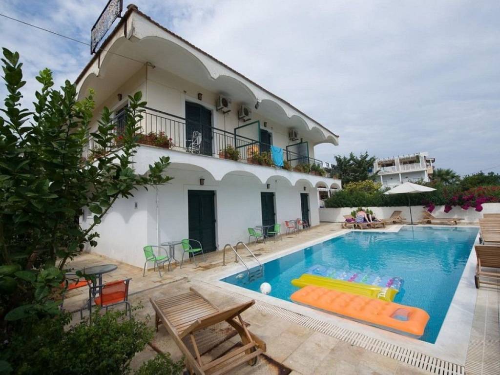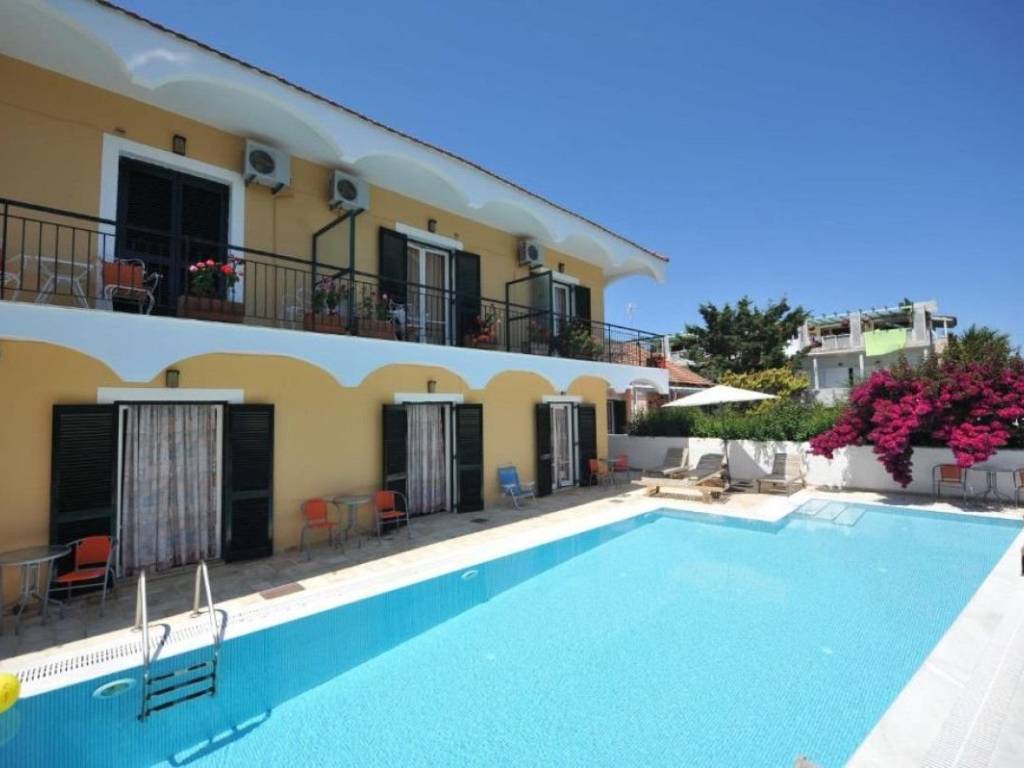 Family owned hotel located in Acharavi, Northern Corfu. It consists of 2 separate buildings with a main areas total of 956 sq.m. The property includes 24 rooms (48 beds), with refrigerator, TV and air conditioning in each room, reception areas and fully equipped restaurant. Other amenities include a communal swimming pool. The plot is located in Acharavi, just 150 m. from Almyros beach. It has frontage on 2 municipal paved streets with access by car from both of them. The property could be a great opportunity for upgrading into a higher-grade unit, depending on the depth of renovation. Price is negotiable.