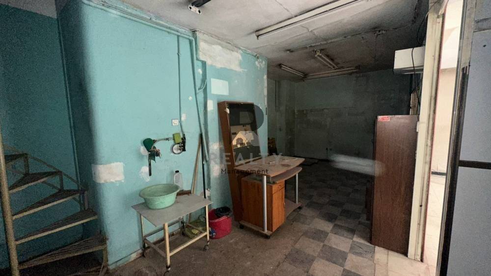 Αποτελείται από 2 χώρους, πατάρι και 1 WC. Είναι ημιτελές, χρήζει ανακαίνισης και διαθέτει κουφώματα αλουμινίου, κλιματισμό, δάπεδα από μωσαϊκό. Με μηδενικά κοινόχρηστα. Το ακίνητο έχει την παρακάτω διαρρύθμιση χώρων: