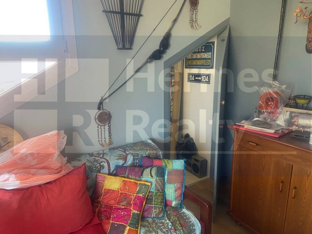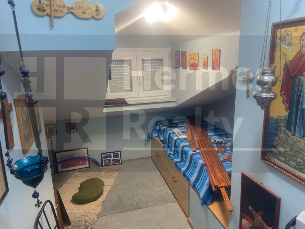 Δυο υπνοδωμάτια με μπαλκονόπορτες .Διαθέτει ενεργειακό τζάκι που ζεσταίνει και τους δυο ορόφους .Η εσωτερική σκάλα φτιαγμένη από ξύλο οξιάς και μασίφ σίδερο είναι εργονομικά κατασκευασμένη, καθώς χρησιμοποιείται ως βιβλιοθήκη και αποθηκευτικός χώρος στο κάτω μέρος, Επίσης υπάρχει συρόμενη κατασκευή που απομονώνει τους δυο χώρους ,για εξοικονόμηση θερμότητας.