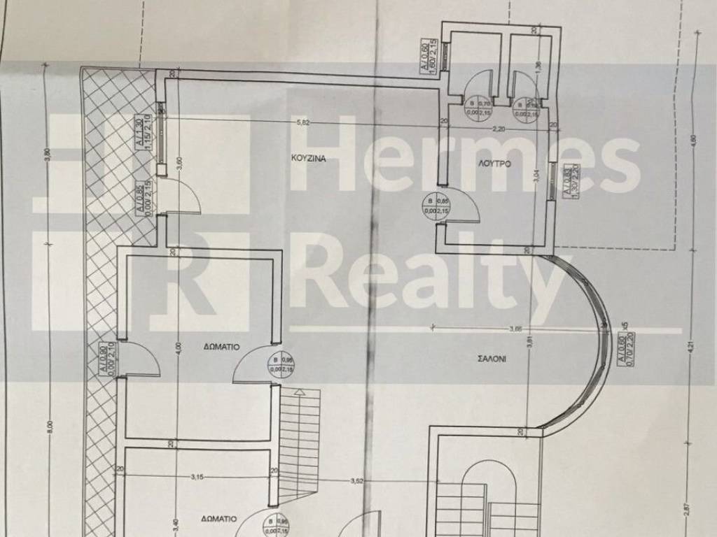 Στον πρώτο όροφο υπάρχει σαλόνι οβάλ με περιμετρικά παράθυρα ,ημιτελής κουζίνα, τεράστιο μπάνιο με υποδοχή για σάουνα ,με πάγκο νιπτήρα από ξύλο καρυδιάς με τρία παράθυρα, καθιστώντας το φωτεινό και ευάερο.