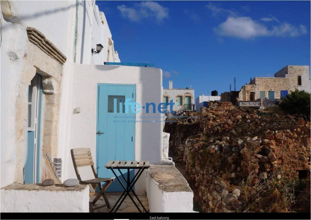 Κίμωλος, Χώρα: Πωλείται κατοικία μεζονέτα 76 τ.μ., η οποία αποτελεί μέρος του Κάστρου της Κιμώλου, το οποίο χτίστηκε τον 16ο αιώνα και έχει αναγνωριστεί ως επίσημο Μνημείο από την ελληνική κυβέρνηση. αποτελεί μια ανεξάρτητη κατοικία με δυνατότητα αυτοεξυπηρέτησης, που μπορεί να φιλοξενήσει έως πέντε άτομα. Το Σπίτι στο Κάστρο χτίστηκε τον 16ο αιώνα, με πέτρινους τοίχους πάχους 1 μέτρου και ταβάνια ύψους 4 μέτρων. Τα υπνοδωμάτια διαθέτουν μικρά ανοίγματα κάτω από τη στέγη και παράθυρα προς το εσωτερικό, επιτρέποντας την κυκλοφορία του αέρα. Επιπλέον, έχει εφαρμοστεί διπλή μόνωση στη στέγη. Η κουζίνα, που βρίσκεται στο ισόγειο – κατά το ήμισυ χτισμένη μέσα στο βραχώδες έδαφος – παραμένει δροσερή το καλοκαίρι και ζεστή τον χειμώνα. Το ακίνητο διαθέτει δύο υπνοδωμάτια στον 1ο όροφο, το καθένα με ανεξάρτητη είσοδο και συνδέονται με το κύριο μπάνιο και την κουζίνα μέσω εσωτερικής σκάλας. Το δυτικό υπνοδωμάτιο διαθέτει 2 μονά κρεβάτια, έναν καναπέ-κρεβάτι, τηλεόραση, κλιματιστικό, ανεμιστήρα οροφής και μπαλκόνι με σκάλα. Το ανατολικό υπνοδωμάτιο διαθέτει ένα διπλό κρεβάτι, χώρο εργασίας, γραφείο, κλιματιστικό, ανεμιστήρα οροφής, χρηματοκιβώτιο, παραδοσιακό τζάκι, WC και μπαλκόνι με σκάλα που οδηγεί στα εντυπωσιακά ερείπια του εσωτερικού του κάστρου. Στο ισόγειο βρίσκεται το κύριο μπάνιο, καθώς και η κουζίνα-τραπεζαρία, η οποία διαθέτει τραπέζι για έξι άτομα, κεραμικές εστίες, φούρνο, μεγάλο ψυγείο, πλυντήριο ρούχων και τζάκι. Τιμή 350.000€ | Κωδικός Ακινήτου: #1339