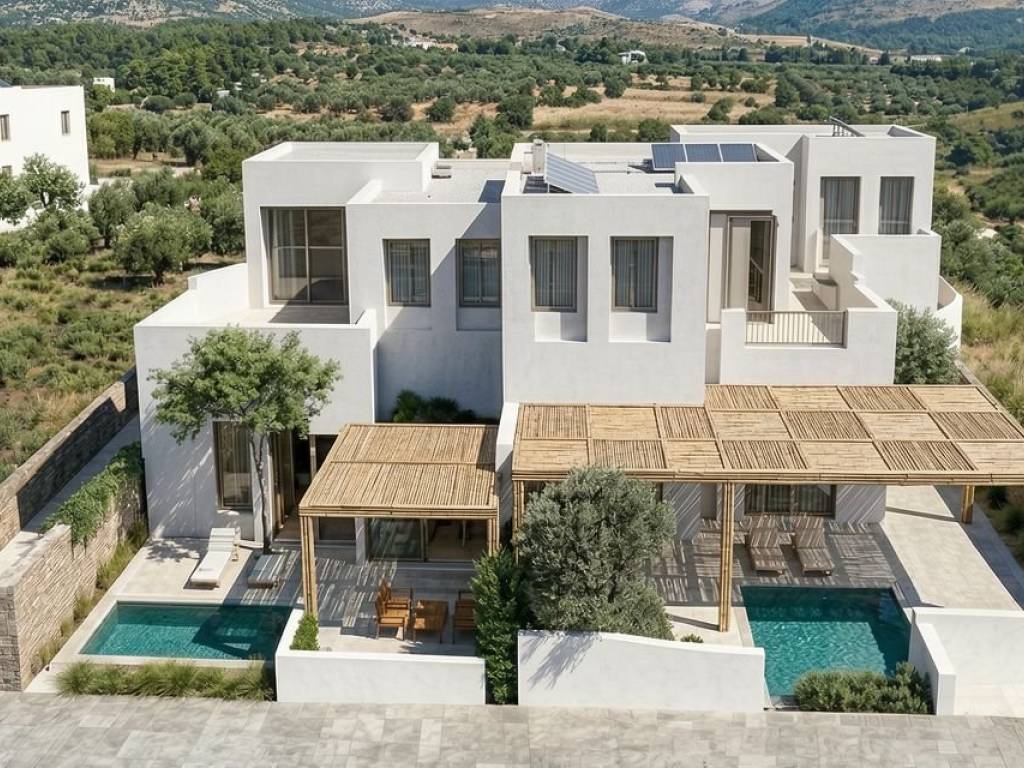 Μοντέρνες Βίλες προς Πώληση στο Άσπρο Χωριό, Πάρος – Υπό Κατασκευή Αποκτήστε το δικό σας κομμάτι παραδείσου σε αυτό το συγκρότημα 4 βιλών στο Άσπρο Χωριό. H κάθε βίλα προσφέρει 140-160 τ.μ. χώρο διαβίωσης (μαζί με την τοιχοποιία), ολοκλήρωση το 2027, οι βίλες απέχουν μόλις 1.300 μέτρα από την παραλία Λολαντώνη. Βασικά Χαρακτηριστικά: • Σύγχρονος Σχεδιασμός: Μοντέρνες βίλες σε κυκλαδίτικο στυλ με λευκούς τοίχους, πέτρινες λεπτομέρειες και ανοιχτούς χώρους που συνδέονται με σκιερές πέργκολες. • Ιδιωτικές Παροχές: Κάθε βίλα διαθέτει ιδιωτική πισίνα, διαμορφωμένο κήπο και αποκλειστική θέση στάθμευσης, ιδανική για τη ζωή στο νησί.