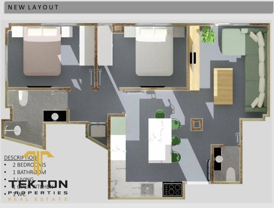 Νέος Κόσμος, Διαμέρισμα προς πώληση πλήρως ανακαινισμένο διαμέρισμα 67 τ.μ., υπερυψωμένου ισογείου, κατασκευής 1965. Το ακίνητο αποτελείται από δύο υπνοδωμάτια, φωτεινή και ευρύχωρη σαλοκουζίνα, μπάνιο και επιπλέον WC. Έχει ανακαινιστεί πλήρως το 2025, με ιδιαίτερη προσοχή στη λεπτομέρεια και τον σύγχρονο σχεδιασμό. Οι χώροι αποπνέουν minimal αισθητική με γήινες και μοντέρνες αποχρώσεις, ενώ τα υλικά που έχουν χρησιμοποιηθεί συνδυάζουν υψηλή ποιότητα και καλαισθησία. Στο σαλόνι κυριαρχούν οι γκρι και πράσινοι τόνοι με concrete δάπεδο και κομψό φωτισμό, ενώ η κουζίνα είναι πλήρως εξοπλισμένη, με πράσινα ντουλάπια και μαρμάρινο πάγκο. Τα υπνοδωμάτια έχουν διακοσμηθεί με φυσικές αποχρώσεις δημιουργώντας μια αίσθηση ζεστασιάς και χαλάρωσης. Το μπάνιο ξεχωρίζει με μαύρα είδη υγιεινής και μοντέρνο σχεδιασμό. Το διαμέρισμα διαθέτει αυτόνομη θέρμανση, νέες ηλεκτρολογικές και υδραυλικές εγκαταστάσεις, διπλά ενεργειακά τζάμια, σύγχρονο φωτισμό LED και είναι έτοιμο για άμεση κατοίκηση. Βρίσκεται σε ήσυχη γειτονιά του Νέου Κόσμου, κοντά σε στάσεις μετρό, τραμ, αγορά, σχολεία και με άμεση πρόσβαση στο κέντρο της Αθήνας και τη Λεωφόρο Συγγρού. ***Tekton Properties Real Estate, Τηλ. Επικοινωνίας: +306946395258, email: tekton@tektonproperties.gr***Neos Kosmos – Apartment for Sale, Fully renovated elevated ground floor apartment of 67 sq.m., built in 1965. The property consists of two bedrooms, a bright and spacious open-plan living room and kitchen, one bathroom, and an additional WC. It was completely renovated in 2025 with particular attention to detail and modern design. The spaces reflect a minimal aesthetic with earthy and modern tones, while the materials used combine high quality with refined style. The living room features grey and green tones, concrete flooring, and elegant lighting. The kitchen is fully equipped, with green cabinets and a marble countertop. The bedrooms are decorated in natural tones, creating a sense of warmth and relaxation. The bathroom stands out with black sanitary ware and a sleek modern design. The apartment includes autonomous heating, new electrical and plumbing installations, double-glazed energy-efficient windows, contemporary LED lighting, and is move-in ready. It is located in a quiet neighborhood of Neos Kosmos, close to metro and tram stations, markets, schools, and offers direct access to the center of Athens and Syngrou Avenue. *** Tekton Properties Real Estate, contact number +30 6946 395 258 tekton@tektonproperties.gr