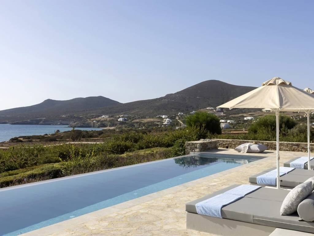 Η βίλα Antiparos Infinity αποτελεί το απόλυτο όραμα της κυκλαδίτικης πολυτέλειας, σε μια τοποθεσία που κόβει την ανάσα. Ανάμεσα στις φημισμένες παραλίες Σωρός και Απάντημα, αυτή η ιδιοκτησία συνδυάζει γαλήνη και κομψότητα, μόλις λίγα βήματα μακριά από μια απομονωμένη, αμμώδη ακτή. Το μονοπάτι μέσα από τους αρωματικούς μεσογειακούς κήπους οδηγεί απευθείας στην παραλία, προσφέροντας ένα αίσθημα ιδιωτικότητας και αποκλειστικότητας. Δύο αυτόνομες κατοικίες συνυπάρχουν με μοναδική αρμονία. Οι φωτεινοί εσωτερικοί χώροι τους περιλαμβάνουν πολυτελή σαλόνια, τραπεζαρίες και υπερσύγχρονες κουζίνες με κεντρικά νησιά, που ανοίγουν σε βεράντες για δείπνα με θέα το Αιγαίο. Η κύρια σουίτα κάθε κατοικίας προσφέρει ιδιωτική βεράντα με θέα στη θάλασσα, ενώ τα υπνοδωμάτια και οι χώροι αναψυχής στα κατώτερα επίπεδα εξασφαλίζουν απόλυτη άνεση για όλους τους φιλοξενούμενους. Οι εξωτερικοί χώροι συνδυάζουν την πολυτέλεια με την απλότητα. Οι ευρύχωρες βεράντες οδηγούν σε έναν κρυφό καθιστικό χώρο με τζάκι, ιδανικό για βραδιές κάτω από τα αστέρια. Με απαράμιλλη τοποθεσία, αρχιτεκτονική μοναδικότητα και άμεση πρόσβαση στη θάλασσα, η βίλα Antiparos Infinity δεν είναι μόνο ένα σπίτι. Είναι μια εμπειρία ζωής και μια έξυπνη επένδυση, με υψηλή απόδοση είτε ενοικιαστεί ως δύο ανεξάρτητες κατοικίες είτε ως μια ενιαία πολυτελή έπαυλη. Η Αντίπαρος είναι ένα σχετικά μικρoύ μεγέθους νησί του νοτίου Αιγαίου εντός του συμπλέγματος των Κυκλάδων. Εντοπίζεται δίπλα στην Πάρο˙ χρειάζονται μόνο επτά λεπτά για να φτάσετε στην Αντίπαρο από το λιμάνι της Πούντας, στην Πάρο, με κάποιου είδους πλεούμενο. Το γεωφυσικό κάλλος της Αντιπάρου είναι ιδανικό για κάθε λάτρη των υπαιθρίων δραστηριοτήτων καθώς και κάθε φυσιοδίφη, προσφέροντας μία ευρεία επιλογή που κυμαίνεται από θαλάσσια πάρεργα, όπως καταδύσεις, έως αιωροπτερουμένη κυματοδρομία («kite surfing»), ήπια πεζοπορία γεωλογία και σπηλαιολογία. Μάλιστα στην Αντίπαρο μπορεί κάποιος να δει τόσο τον αρχαιώτερο σταλαγμίτη της Ευρώπης, στο Σπήλαιο της Αντιπάρου εντός του λοφίσκου του Αγίου Ιωάννη: ένα πάνθεον από σταλακτίτες και σταλαγμίτες, όσο και τις πολυάριθμες θαλάσσιες σπηλιές που αναμένουν έναν σύγχρονο «Ροβινσώνα Κρούσο» να τις εξερευνήσει. Η Χώρα της Αντιπάρου, η πρωτεύουσα του νησιού, είναι μία γραφική κωμόπολη κατέχοντας ένα ενδιαφέρον ιστορικό υπόβαθρο όπως το Ενετικό Κάστρο του δεκάτου πέμπτου αιώνος, το Ιστορικό και Λαογραφικό Μουσείο του νησιού, κ.τ.λ. . Χωροταξικά υπάρχουν επίσης τρεις νησίδες δυτικά της Αντίπαρου, συγκεκριμένα 1) το Δεσποτικό, 2) το Τσιμιντήρι (μεταξύ Αντιπάρου και Δεσποτικού) και 3) το Στρογγυλό (Δυτικά του Δεσποτικού), οι οποίες διατηρούν την «πολυτέλεια» να κάνουν τους επισκέπτες τους να νιώθουν σα διεθνής πασίγνωστες προσωπικότητες με το δικό τους «ιδιωτικό», απομονωμένο νησάκι. Η Αντίπαρος μαζί με τις «παραστάδες» νησίδες της προσφέρει απομεμακρυσμένους «παράδεισους» επί της Γης για προσωπικές στιγμές, γαμήλιες τελετές κι' εκδηλώσεις λόγῳ των πολυάριθμων ναΐσκων και των υπαιθρίων ρομαντικών χώρων για συγκεντρώσεις.