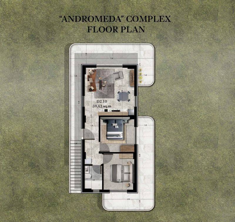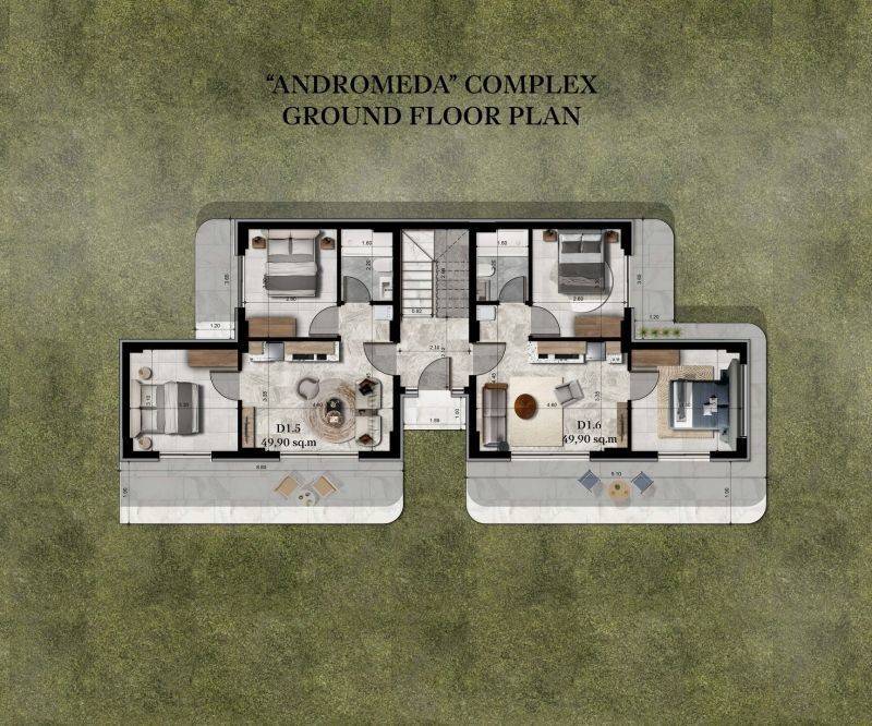 • 3 Διαμερίσματα ισογείου από 49,90τ.μ. έως 59,42 τ.μ, που αποτελείται από σαλοκουζίνα, 2 υπνοδωμάτια, 1 μπάνιο.