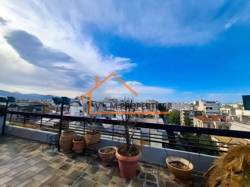 Νέο Φάληρο, πωλείται μοναδική μεζονέτα 7ου και 8ου ορόφου, 150 τ.μ., με 150 τ.μ. εντυπωσιακές βεράντες και ανεμπόδιστη πανοραμική θέα! Σε προνομιακή τοποθεσία, λίγα λεπτά από το κέντρο και τα μέσα μαζικής μεταφοράς, το ακίνητο προσφέρει στον 7ο όροφο άνετο σαλόνι με τζάκι, τραπεζαρία, κουζίνα, δύο υπνοδωμάτια, μπάνιο και WC, ενώ στον 8ο όροφο φιλοξενείται ένα ακόμη υπνοδωμάτιο και μπάνιο. Και τα δύο επίπεδα έχουν άμεση πρόσβαση στις μεγάλες βεράντες με εξαιρετική θέα. Διαθέτει επίσης δύο θέσεις στάθμευσης στην πυλωτή, αποθήκη στο υπόγειο και αυτόνομη θέρμανση πετρελαίου.