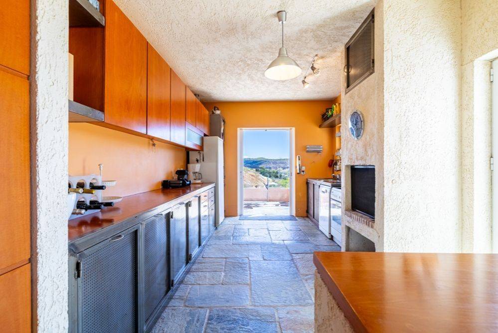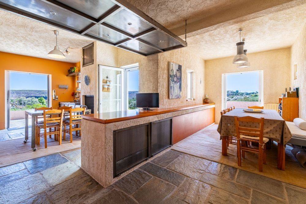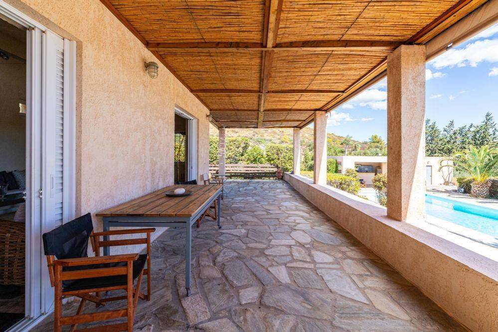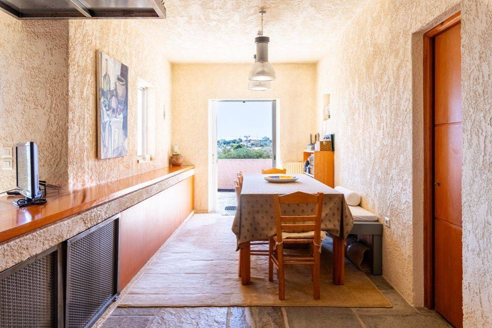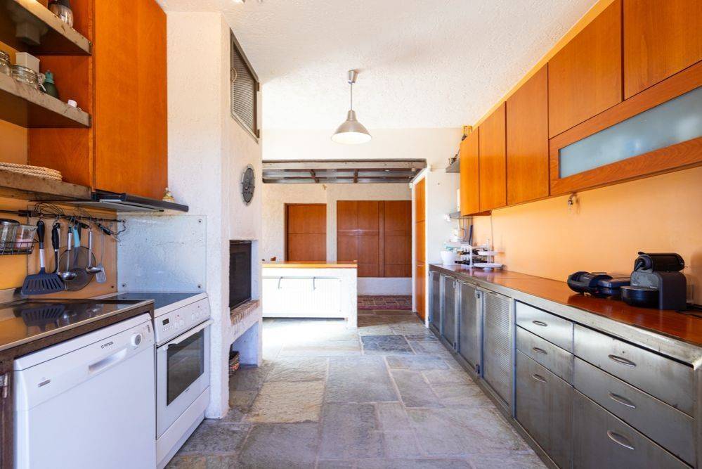 Αυτή η εξοχική μονοκατοικία ξεχωρίζει για το υπέροχο φυσικό περιβάλλον της και το ήπιο μεσογειακό κλίμα της περιοχής Λαυρεωτικής. Η τοποθεσία της είναι ιδιαίτερα στρατηγική, καθώς βρίσκεται μόλις 12 λεπτά από την Ανάβυσσο και το Λαύριο, 18 λεπτά από τον ναό του Ποσειδώνα στο Σούνιο και 35 λεπτά από το αεροδρόμιο Ελευθέριος Βενιζέλος. Ο οικισμός Μετόχι, όπου βρίσκεται το ακίνητο, είναι αραιοκατοικημένος και αποτελείται από εξοχικές κατοικίες αλλά και μονοκατοικίες μόνιμης διαβίωσης. Η κατοικία αποπνέει λιτή γεωμετρία, με κύρια υλικά την πέτρα Πηλίου στο δάπεδο και τον αδρό σοβά. Αναπτύσσεται σε 145 τ.μ. κύριων χώρων ανωδομής, ενώ διαθέτει και ένα βοηθητικό ημιυπόγειο επίπεδο περίπου 200 τ.μ. Το ισόγειο είναι κυρίως open plan, φωτεινό και με νότιοανατολικό προσανατολισμό. Περιλαμβάνει καθιστικό με τζάκι που επικοινωνεί οπτικά με την τραπεζαρία, καθώς και έναν ξεχωριστό χώρο που μπορεί να χρησιμοποιηθεί ως τηλεόραση, γραφείο ή ξενώνας. Η κουζίνα, με δικό της τζάκι, είναι χειροποίητη, κατασκευασμένη από ξύλο και μέταλλο. Το ισόγειο εξυπηρετείται από ένα μπάνιο, ενώ η πέτρινη, γραμμική σκάλα οδηγεί στο master υπνοδωμάτιο του πρώτου ορόφου με το δεύτερο μπάνιο. Στο υπόγειο υπάρχει ένα ευρύχωρο playroom με bar και τζάκι, τρία επιπλέον υπνοδωμάτια, walk-in closet, ένα μπάνιο και αποθηκευτικός χώρος. Η κύρια, στεγασμένη βεράντα της κατοικίας βλέπει προς την υπαίθρια πισίνα, η οποία διαθέτει υποδομές BBQ, ντους και WC. Επιπλέον, το ακίνητο περιλαμβάνει ένα ημιτελές ανεξάρτητο διαμέρισμα 60 τ.μ. κάτω από την πισίνα, το οποίο προσφέρει ποικίλες δυνατότητες χρήσης. Στο κτήμα των σχεδόν 7 στρεμμάτων υπάρχουν αποθηκευτικοί χώροι, κλειστός χώρος στάθμευσης για δύο οχήματα και δύο γεωτρήσεις. Αυτή η κατοικία μπορεί να αποτελέσει είτε μόνιμη κατοικία είτε καταφύγιο σε μία προνομιακή περιοχή της Αττικής, με εξαιρετικές προσβάσεις σε αγορές, αναψυχή και τις κοντινές, μαγευτικές παραλίες. Τοποθεσία:Το Μετόχι Λαυρεωτικής βρίσκεται στο νοτιότερο άκρο της Αττικής χερσονήσου. Είναι μια αναπάντεχα όμορφη και σχετικά άγνωστη τοποθεσία, στο κέντρο ενός νοητού τριγώνου με κορυφές την Ανάβυσσο, το Σούνιο και το Λαύριο. Ανατολικά του Μετοχίου, αναπτύσσεται ο Εθνικός Δρυμός Σουνίου. Μοναδικά χαρακτηριστικά: Η περιοχή συνδυάζει φυσικά, γεωλογικά και πολιτιστικά χαρακτηριστικά με πλούσια ιστορία καθώς είναι ένας τόπος που κατοικείται από τα προιστορικά χρόνια. Εχει ήπιο, μεσογειακό κλίμα με χαμηλή βλάστηση , αμπέλια αλλά και πευκοδάση. Προσβασιμότητα: Το Μετόχι έχει εξαιρετικά εύκολη πρόσβαση σε τοπικές αρτηρίες, αγορά, αναψυχή, υποδομές υγείας και βέβαια στις υπέροχες παραλίες της νοτιοανατολικής Αττικής. Απέχει 12' από το Λιμάνι του Λαυρίου και μόνο 1 ώρα από την Κέα. Το αεροδρόμιο της Αθήνας βρίσκεται σε απόσταση 35' ενώ η Λ.Κηφισίας (κεντρική αρτηρία της πόλης) είναι προσβάσιμη σε 45΄.