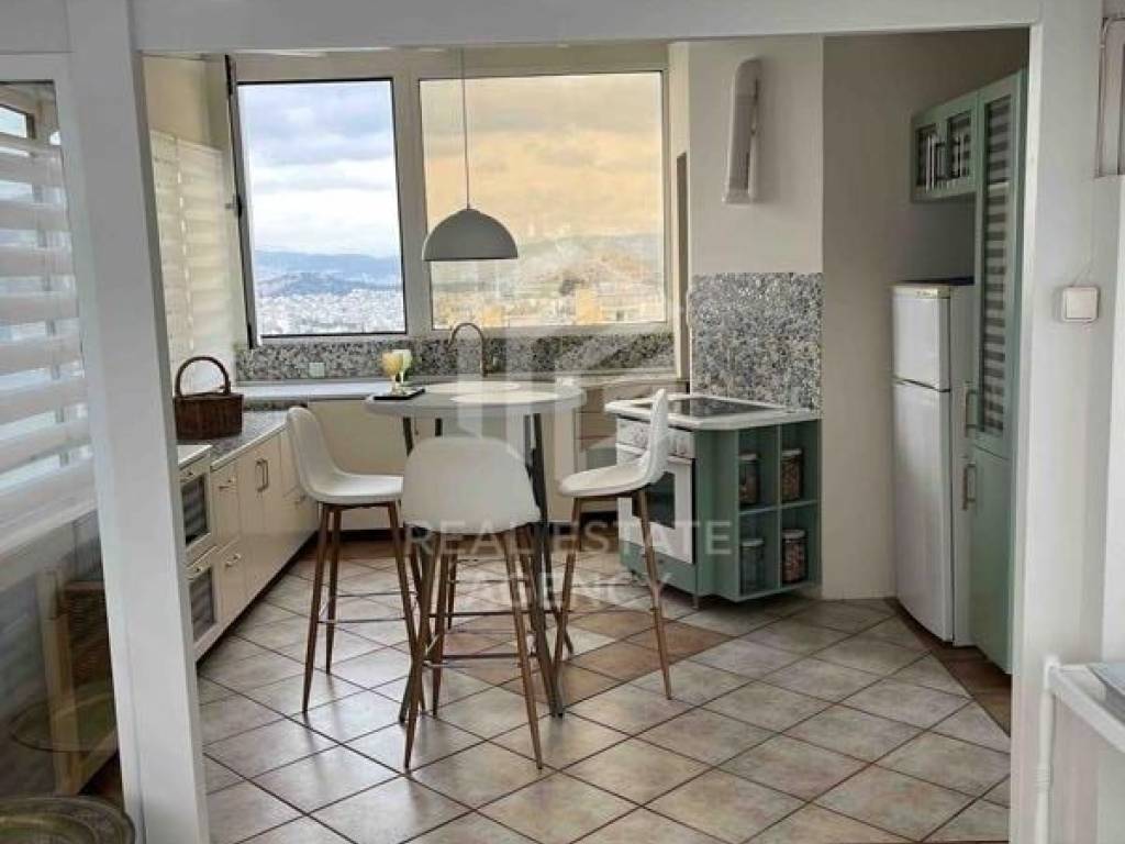 Ενοικιάζεται καταπληκτικό διαμέρισμα στο Παγκράτι με πανοραμική θέα στην Ακρόπολη και στο θέατρο βράχων. Αναλτικότερα αποτελείται απο διαμέρισμα 5ου ορόφου 110 τ.μ. και γκαρσονιέρα 6ουορόφου 35 τ.μ. Μπαίνοντας στον χώρο βλέπουμε το εντυπωσιακό σαλόνι το οποίο διαθέτει τζάκι και καταλήγει σε μια πολυ μεγάλη βεράντα με απεριόριστη θέα. Ο χώρος συνεχίζεται κυκλικά, έτσι ακολουθώντας τον διάδρομο δεξιά φτάνουμε σε ένα εντυπωσιακό δωμάτιο γραφείο που είναι επενδυμένο με τζαμαρία με θέα την Ακρόπολη. Αριστερά βρίσκεται η πρώτη κρεβατοκάμαρα η οποία διαθέτει μεγάλη ντουλάπα και καταλήγει στην μπροστινή βεράντα. Ακριβώς απέναντι είναι η δεύτερη κρεβατοκάμαρα που επίσης έχει ευρύχωρη ντουλάπα και θέα στην Ακρόπολη. Δίπλα είναι το εντυπωσιακό μπάνιο ανακαινισμένο με πολυτελή υλικά. Η ενδιαφέρουσα διαρρύθμιση συνέχιζεται καθώς η κουζίνα με ένα καθιστικό και το δεύτερο μπάνιο βρίσκονται στον έκτο όροφο. Φτάνοντας στον όροφο θαυμάζεις την απεριόριστη θέα της Αθήνας με πανοραμική εικόνα της Ακρόπολης. Κυριαρχεί η καταπληκτικη κατασκευή της κουζίνας με τους πολλούς χώρους ακριβώς δίπλα είναι το πολύ όμορφο μπάνιο. Ο χώρος διαθέτει και καθιστικό. Το ακίνητο διαθέτει αυτόνομη θέρμανση πετρελαίου, πόρτα ασφαλείας, κουφώματα αλουμινίου, σίτες, πάτωμα από μάρμαρο και ξύλο, τζάκι και δύο θέσεις πάρκινγκ. Το διαμέρισμα έχει ανακαινιστεί με προσωπική επίβλεψη γνωστού διακοσμητή. ΜΔ
