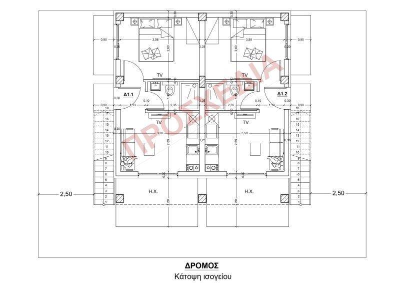 • 2 Διαμερίσματα ισογείου 30,20τ.μ, που αποτελούνται από σαλοκουζίνα, 1 υπνοδωμάτιο, 1 μπάνιο.