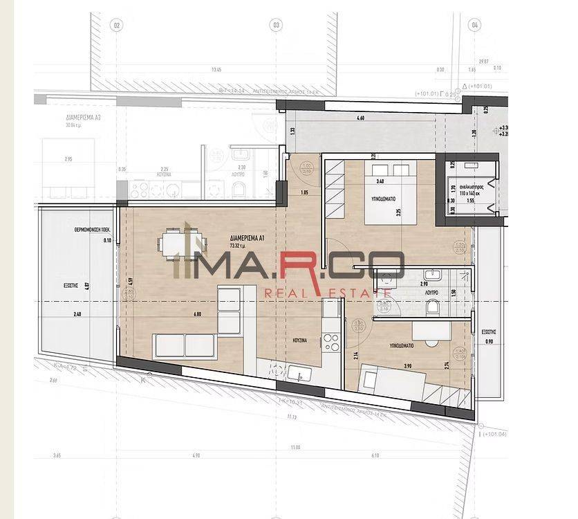 Διαμέρισμα Προς Πώληση, όροφος: 1ος, στην περιοχή: Παγκράτι - Προφήτης Ηλίας. Το εμβαδόν του ακινήτου είναι 74 τ.μ.. Αποτελείται από: 2 Υ/Δ, 1 μπάνιο/α, ενώ διαθέτει 1 θέσεις στάθμευσης (1 Σε υπόγειο χώρο). Έχει κατασκευαστεί το 2025. Η θέρμανση του ακινήτου είναι Ατομική με Fan coil, ενώ επίσης διατίθεται Κλιματισμός, Ηλιακός, έχει κουφώματα Αλουμινίου, Θερμοδιακοπτόμενα με Διπλά - Ενεργειακά τζάμια, ενεργειακό πιστοποιητικό: Α+ και τα δάπεδα είναι: Ξύλο. Η κατάστασή του είναι: Υπο κατασκευή με παράδοση τον 4ο/27, βρίσκεται κοντά σε Συγκοινωνίες, Σχολείο, Πλατεία, Εκκλησία, Super Market, Κέντρο Πόλης, έχει θέα Πάρκο, Ανοιχτωσιά, Ανεμπόδιστη και έχει Νοτιοανατολικό προσανατολισμό. Το ακίνητο είναι Φωτεινό, Διαμπερές, Πρόσβαση/Ράμπα για ΑΜΕΑ και επίσης διαθέτει τα παρακάτω χαρακτηριστικά και πλεονεκτήματα: Σίτες, Ασανσέρ, Πόρτα Ασφαλείας, Θυροτηλεόραση, Συναγερμός, Τριφασικό Ρεύμα, Ηλεκτρικά ρολά. Τιμή: €280.000. MA.R.CO REALESTATE & CONSTRUCTION, Τηλέφωνο Επικοινωνίας: 6944855335, email: info@marco-realestate.gr