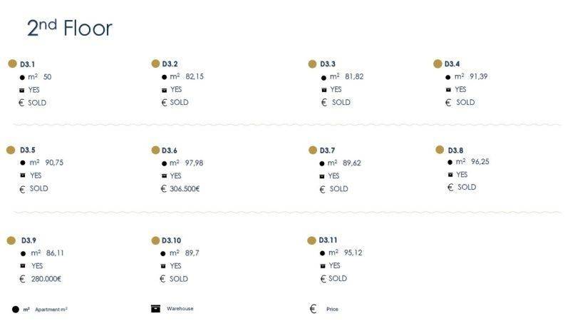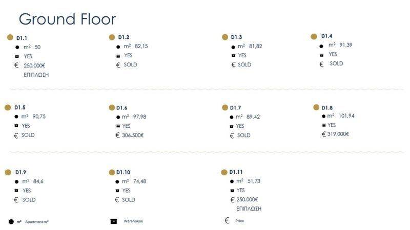 • 29 Διαμερίσματα από 74,28τ.μ. έως 101,94τ.μ, που αποτελούνται από σαλοκουζίναι, 2 υπνοδωμάτια, 1 μπάνιο.