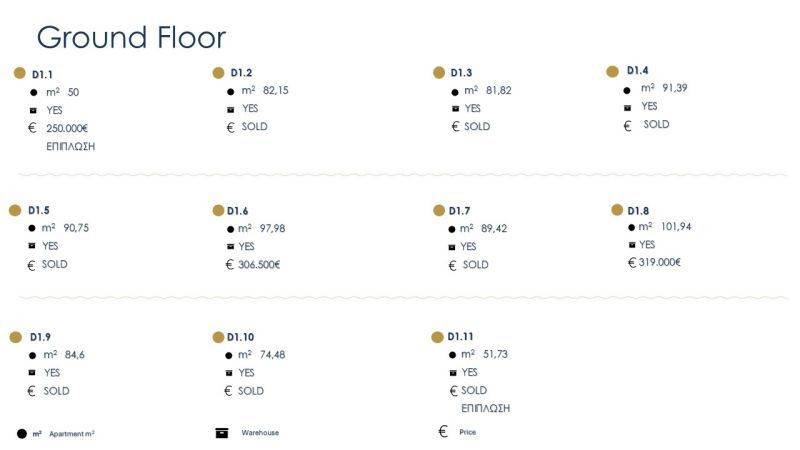 • 29 Διαμερίσματα από 74,28τ.μ. έως 101,94τ.μ, που αποτελούνται από σαλοκουζίναι, 2 υπνοδωμάτια, 1 μπάνιο.